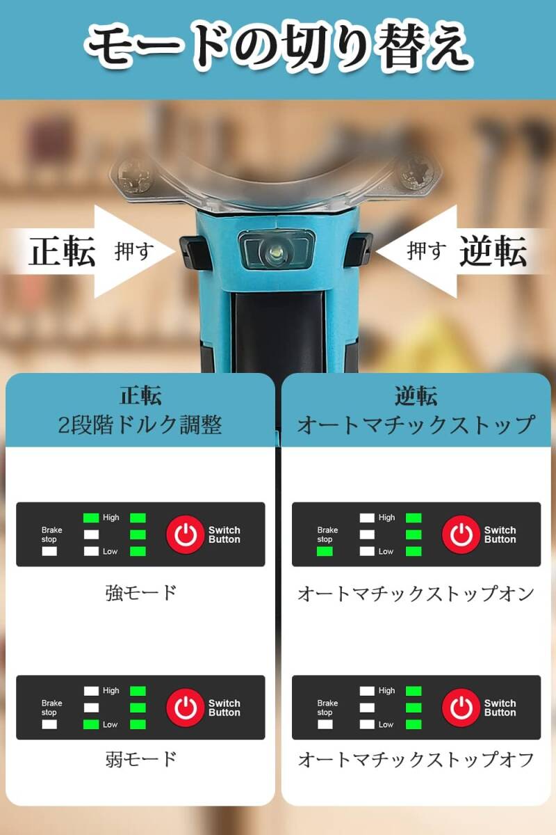 オートストップ機能と2段階トルク切り替えを備えた本製品は、作業やメンテナンスをより容易に行うことができます。