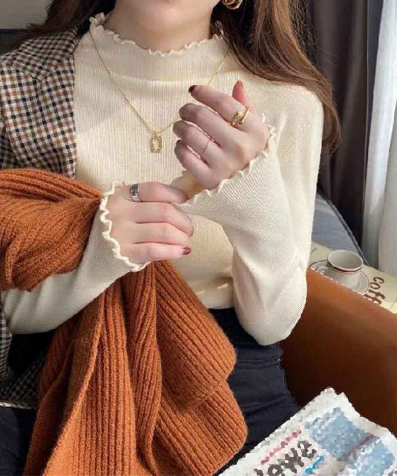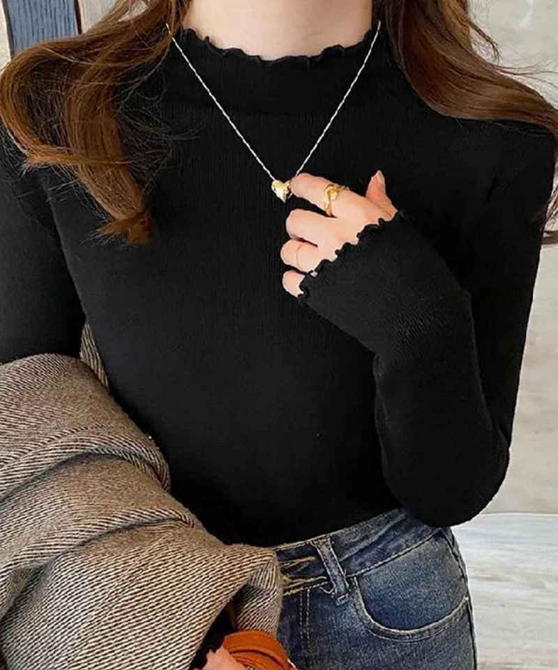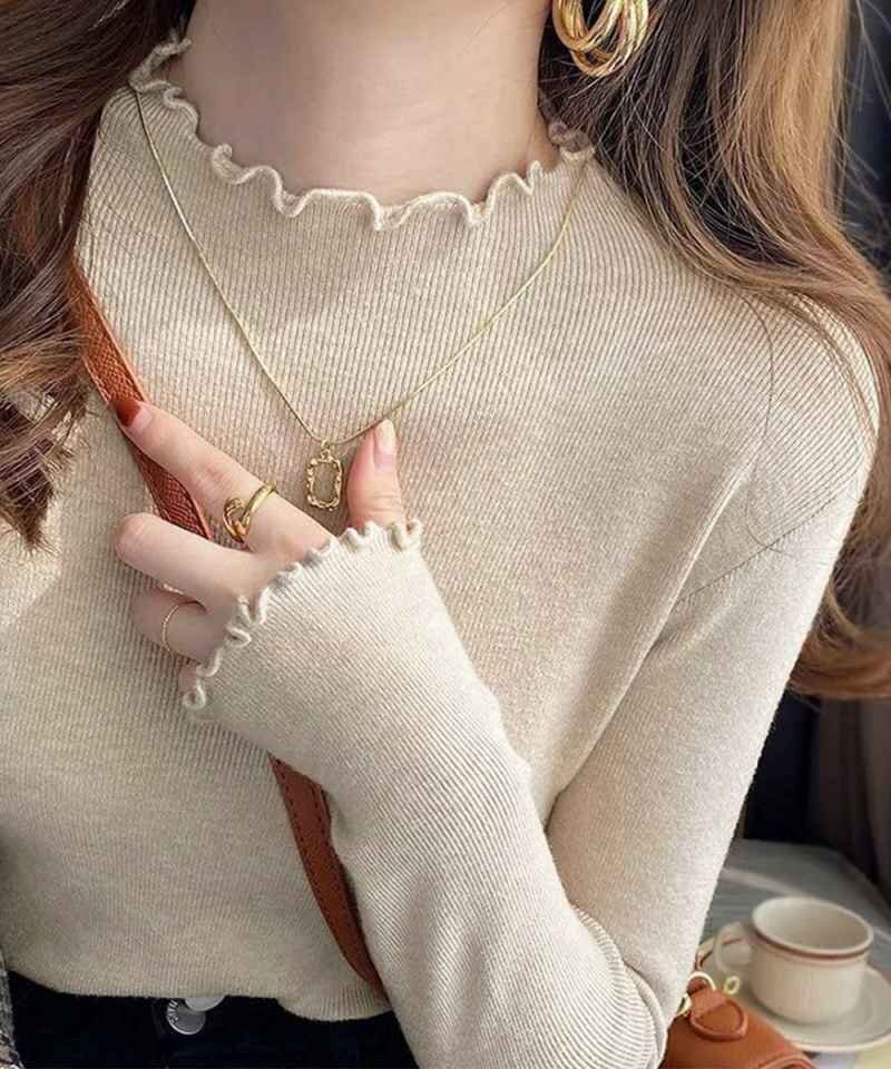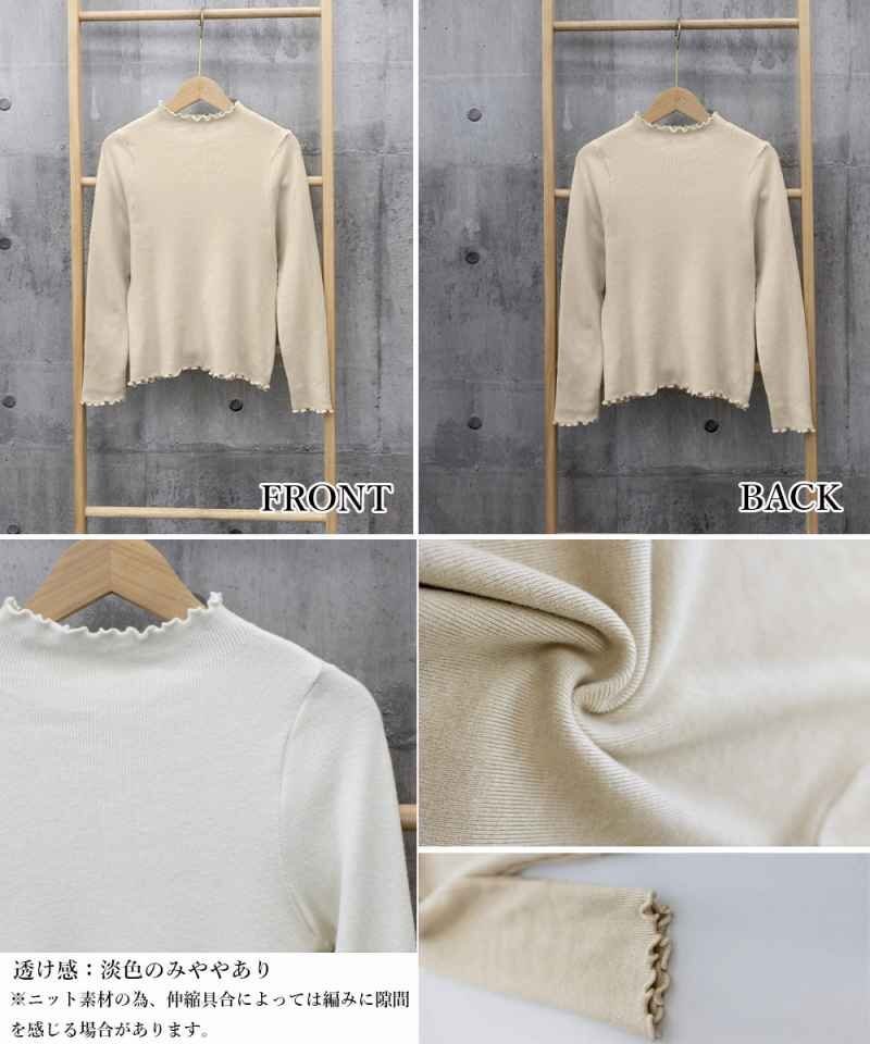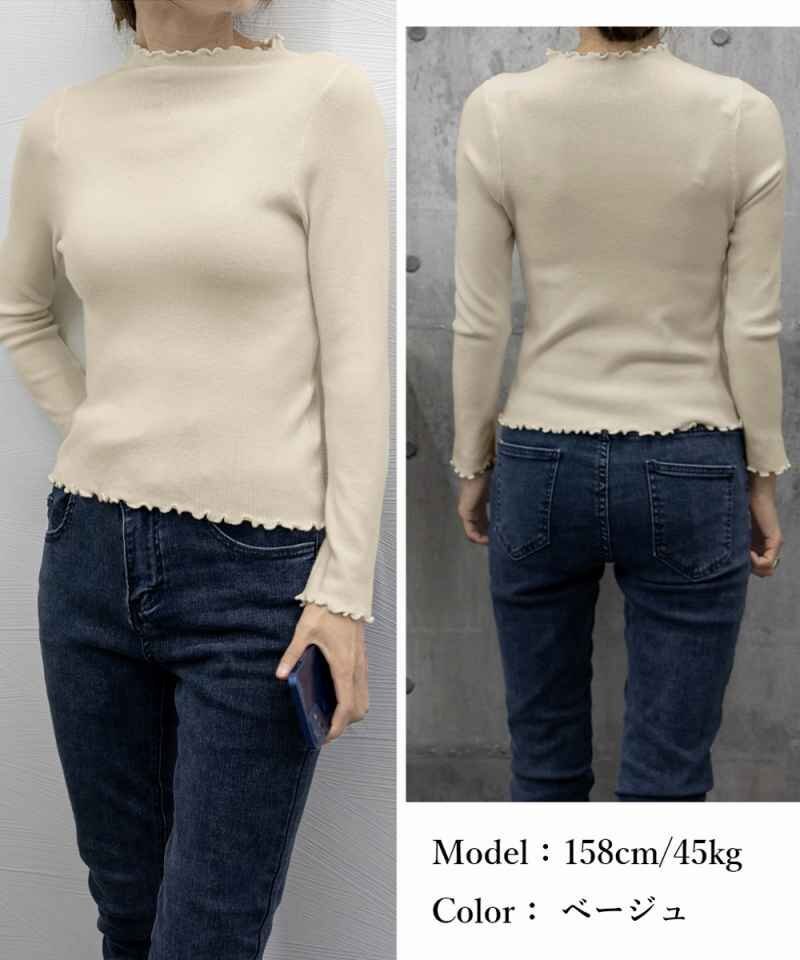 伸びが良く肌ざわり柔らかなメロウフリルニットトップスです。