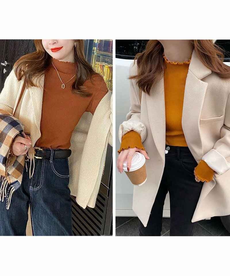 ストレッチが効いていて程よくフィットしますので、サロペットのインナーにしたり、レイヤードコーデにもおススメ◎