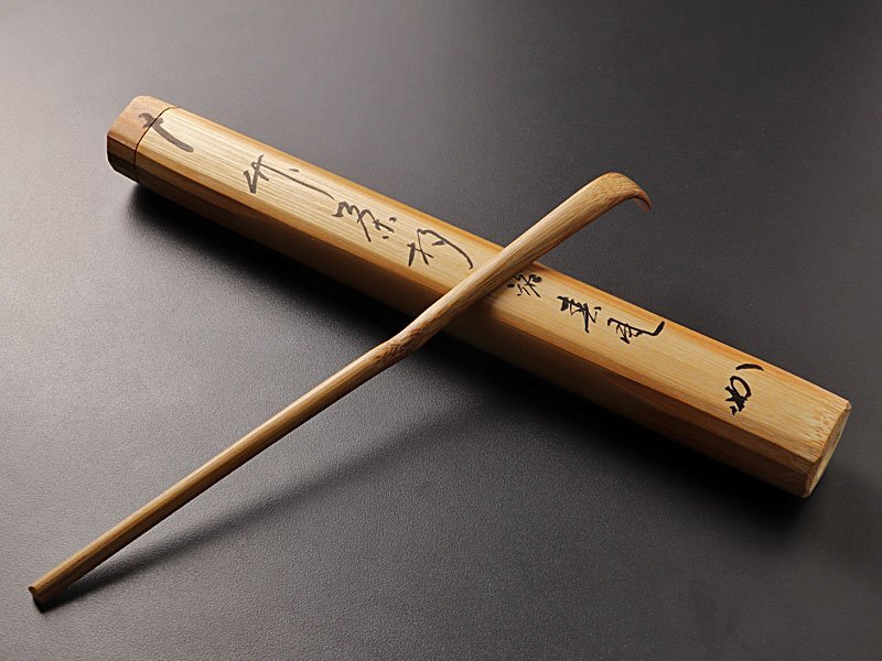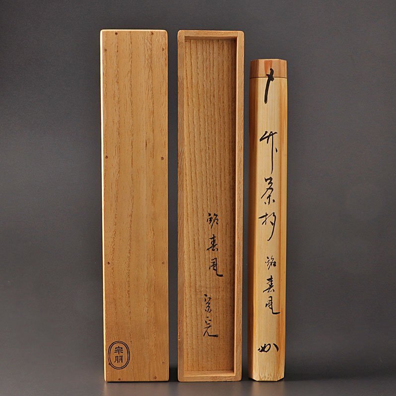 春の兆しを告げる「春風」の銘にふさわしく、竹のしなやかな撓めと節の表情が、穏やかな季節の気配を静かに映します。 下削を手がけたのは、京都の竹工芸師・小倉宗朋。素材の呼吸を感じ取りながら、余計な力を加えず、竹本来の美しさを引き出すその技は、茶人の信頼を集めてきました。櫂先の丸み、撓めの柔らかさ、節の位置に至るまで、亭主の心を映す造形美が宿ります。 ★商品は堀内宗完(兼中斎)、小倉宗朋下削の作品である事を保証致します。 |