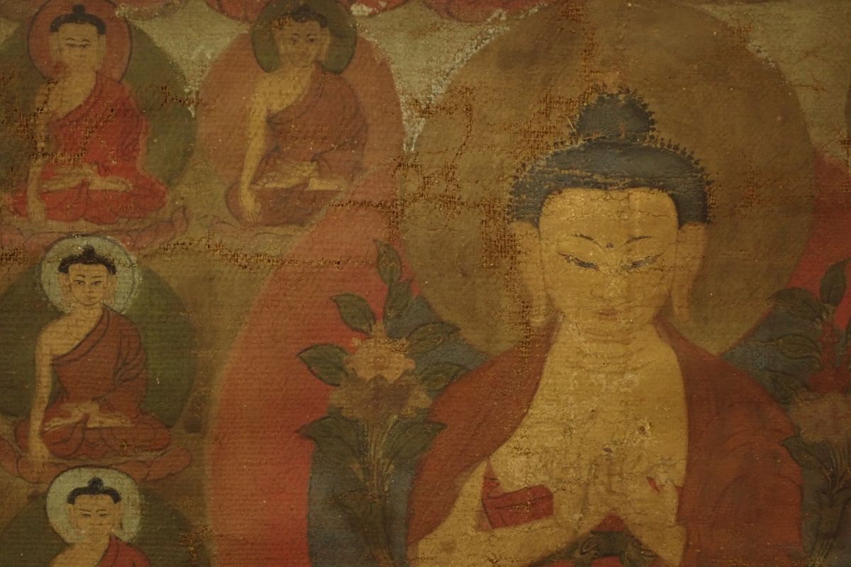 ◆絵画56【真作】古い仏画「曼荼羅」マンダラ◆油彩画/消費税0円