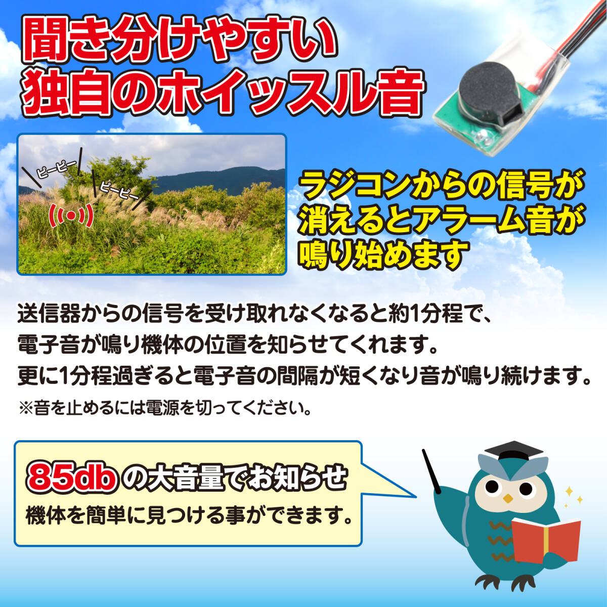 紛失防止、ラジコン用機体発見ブザー(5個セット)。操縦を誤り、草原や茂み等に墜落させてしまい中々機体を見つけられなかった時に電子ブザーが鳴り機体発見の手助けをしてくれます。