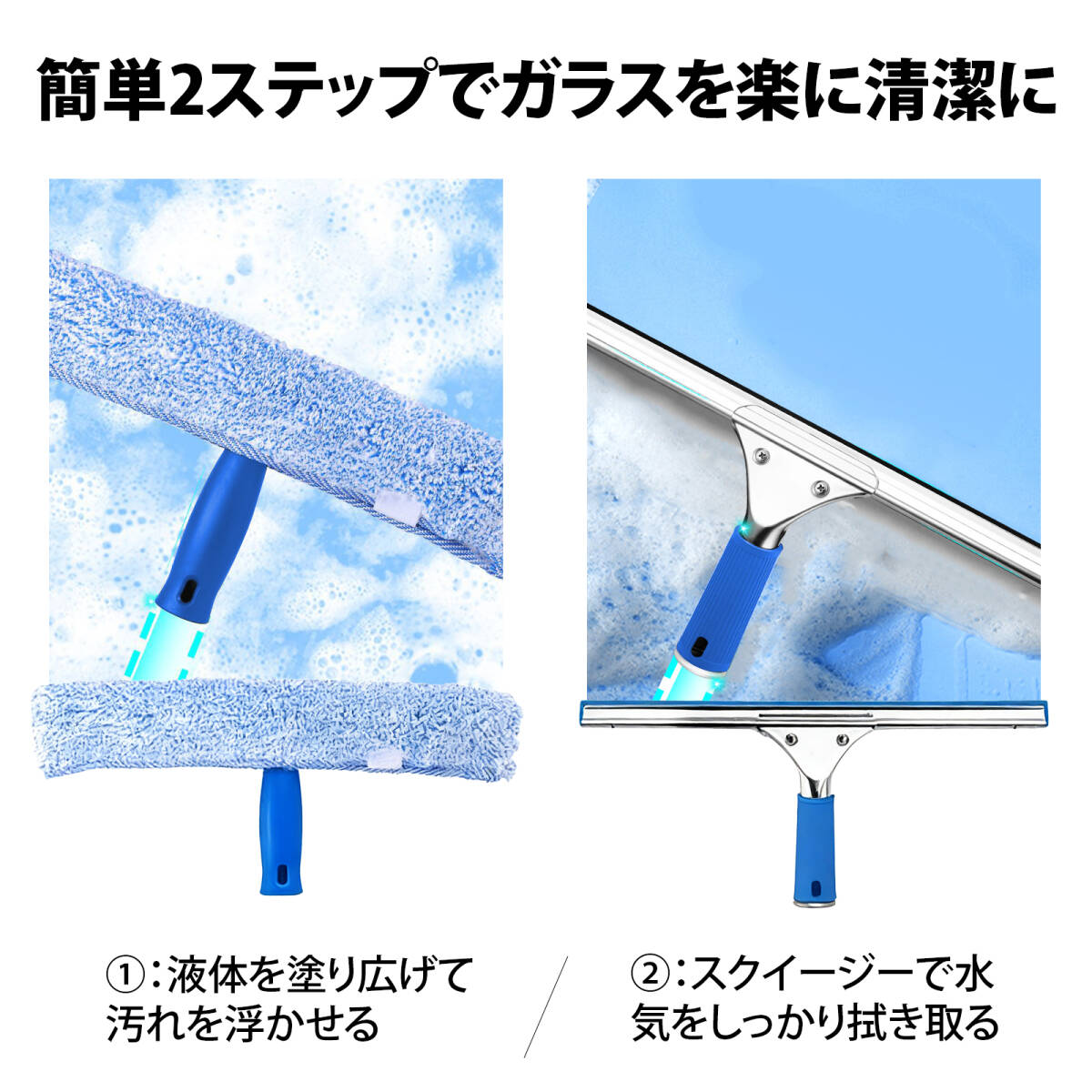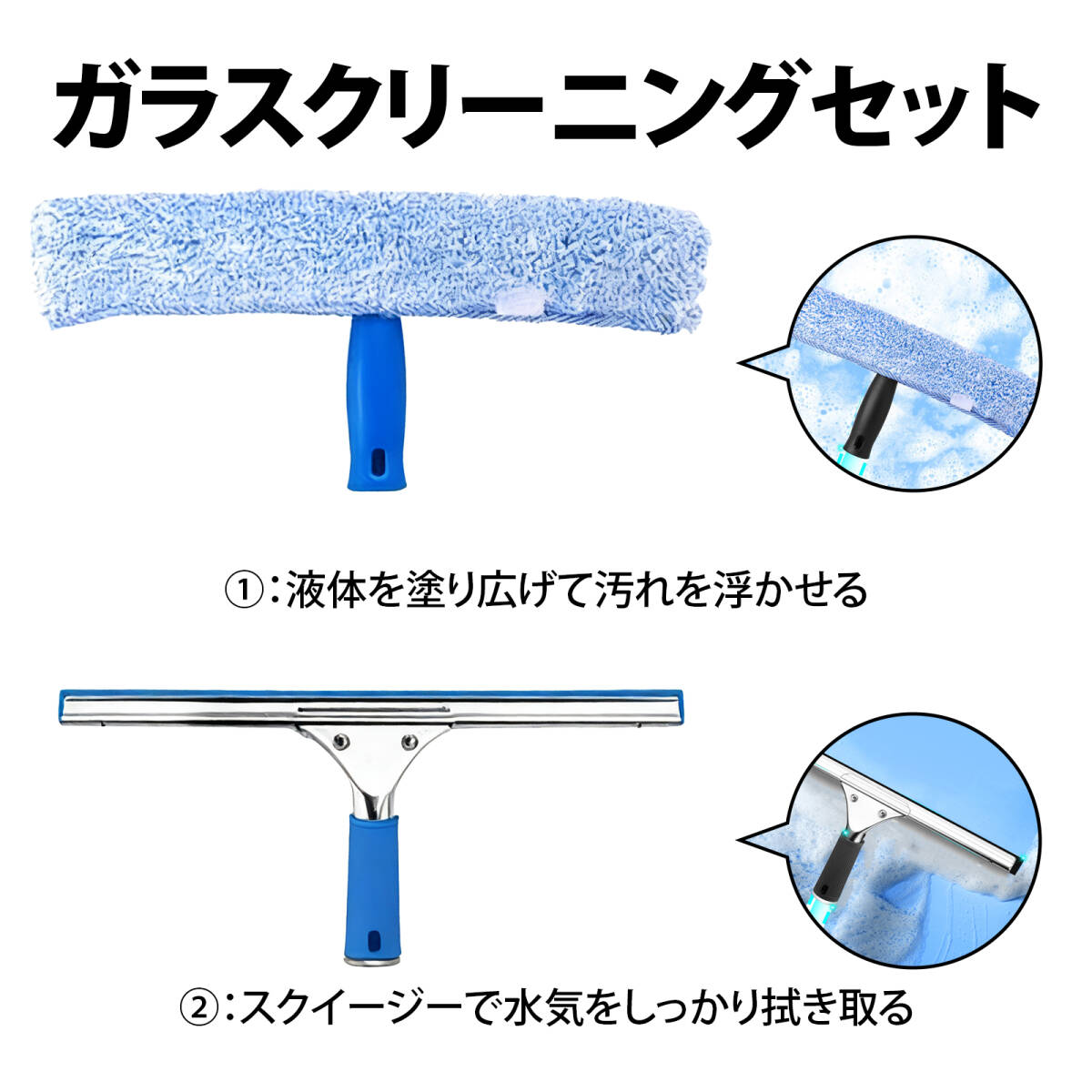 | この商品について | 【吸水性抜群のモップヘッド】:T型モップヘッドには吸水性に優れた布素材を採用。ガラスクリーナーを均一に塗り広げ、水分をしっかり吸収。頑固な汚れもすっきり落とせます。 【柔らかく耐久性のあるゴム刃】:高品質な柔軟ゴムを使用。大きな力でこすってもガラスを傷つけず、スムーズに水滴を切り取ります。浴室の曇り防止にも最適。 【汚れが付きにくくお手入れ簡単】:ヘッド部分は取り外して丸洗い可能。ゴミやカビがたまりにくく、いつでも清潔に使えます。 【便利な壁掛け収納】:付属の粘着フックで壁にスッキリ収納。使いたい時にすぐ取り出せ、省スペースで見た目もスマート。 【多用途で活躍】:窓ガラスはもちろん、浴室・天井・床タイル・車の窓・マンション高層ガラス清掃など、幅広いシーンで大活躍! |