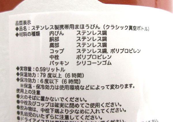 | 内 容 | ■STANLEY クラシック真空ボトル 0.59L(11345) ■サイズ:約底径7.5×高さ30cm ■カラー:グレー ■保冷効力:6度以下(6時間) ■保温効力:79度以上(6時間) ◆参考価格 6380円相当 リサイクルステンレス素材を使用。 日常使いに最適な人気モデル。 抜群の保温保冷性能と耐久性を毎日の生活に。 頑丈で錆びにくい18/8ステンレス使用しています。 |