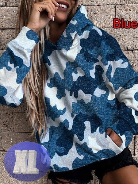 フード付き 迷彩 カモフラパーカー ブルー L トレーナー アウター 防寒 n714