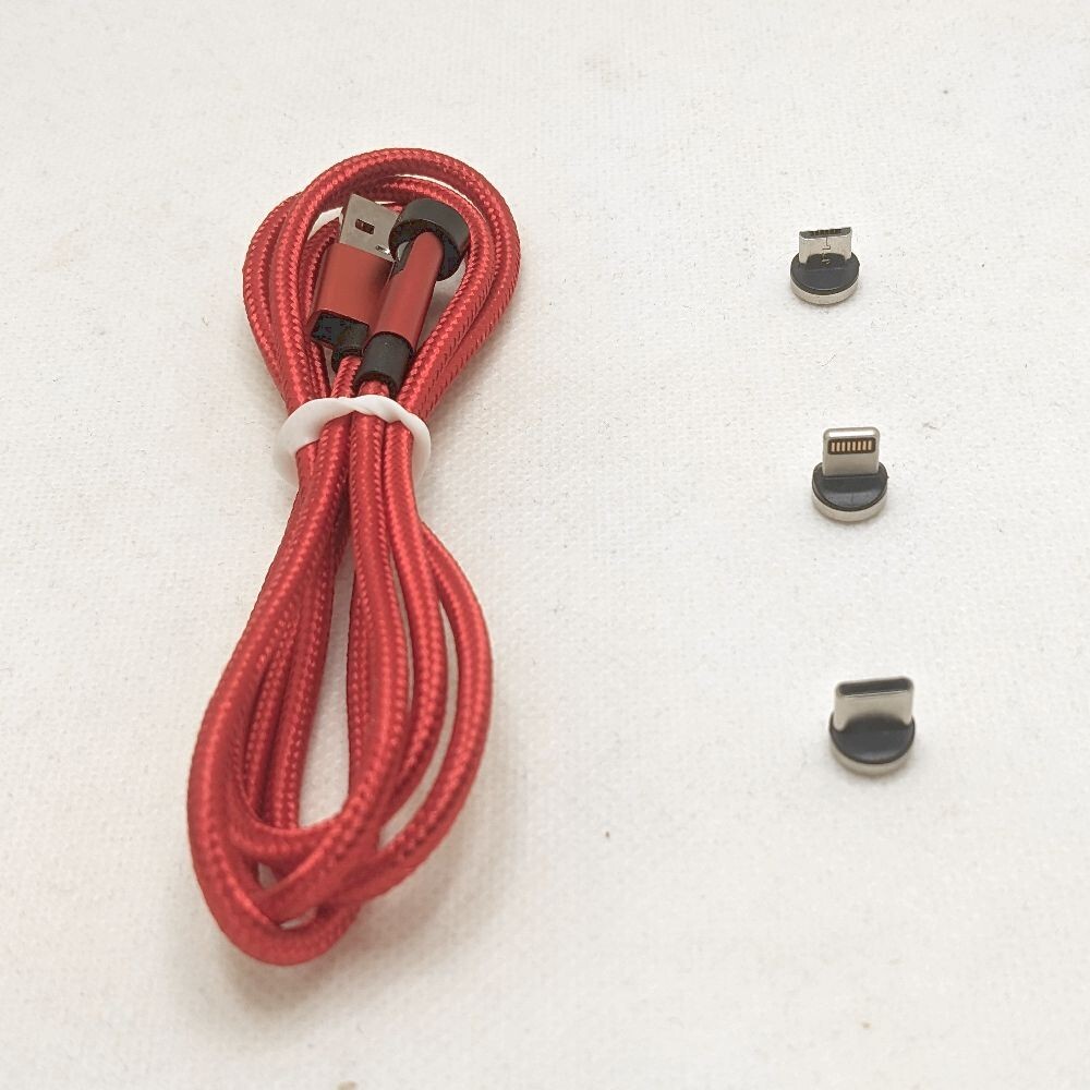 3in1 1m赤色3本曲るマグネット磁石式USB充電通信ケーブル