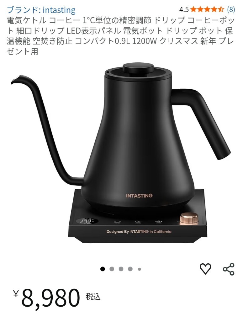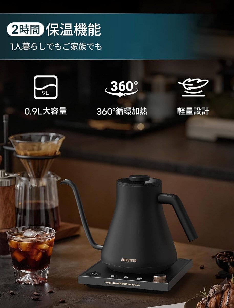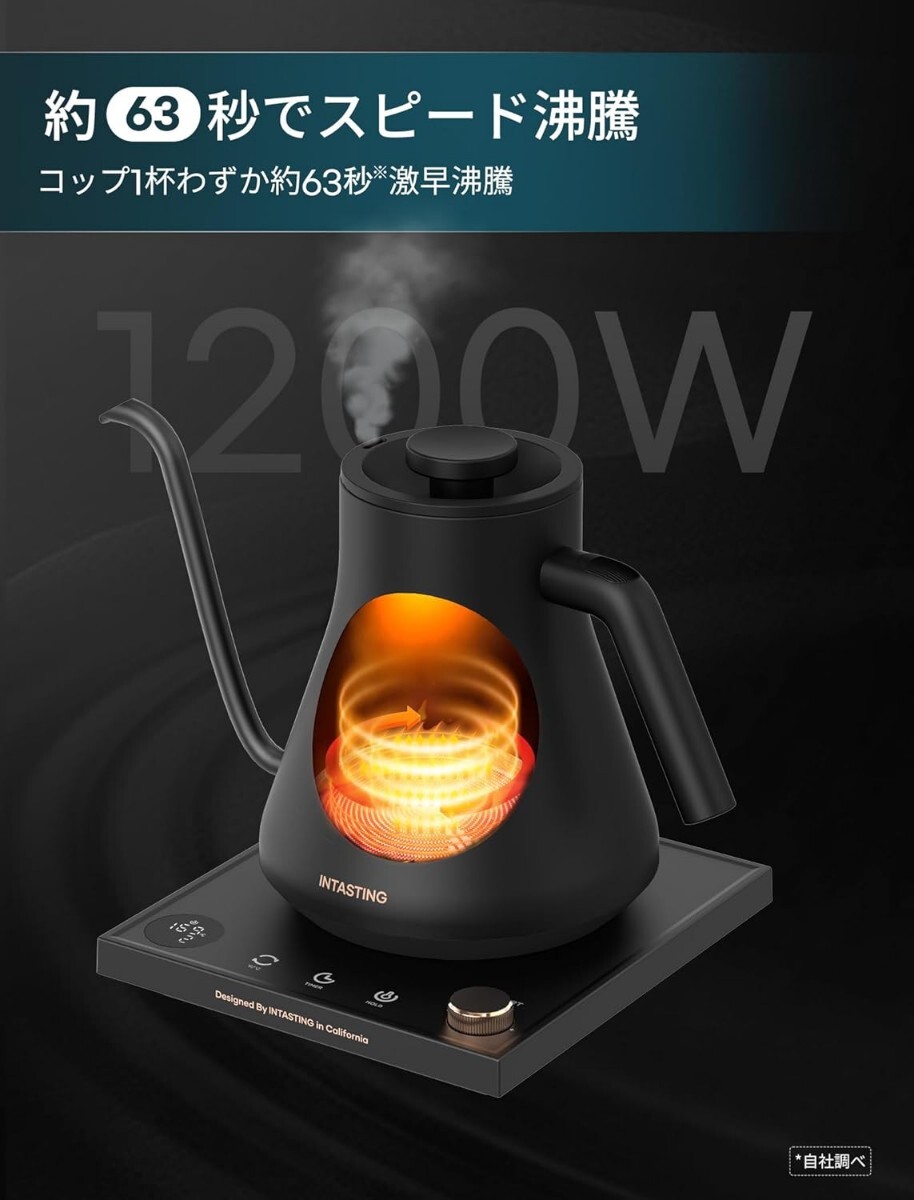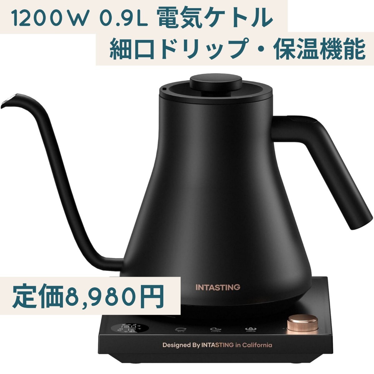 intasting 1200W 0.9L 電気ケトル ブラック色です☆