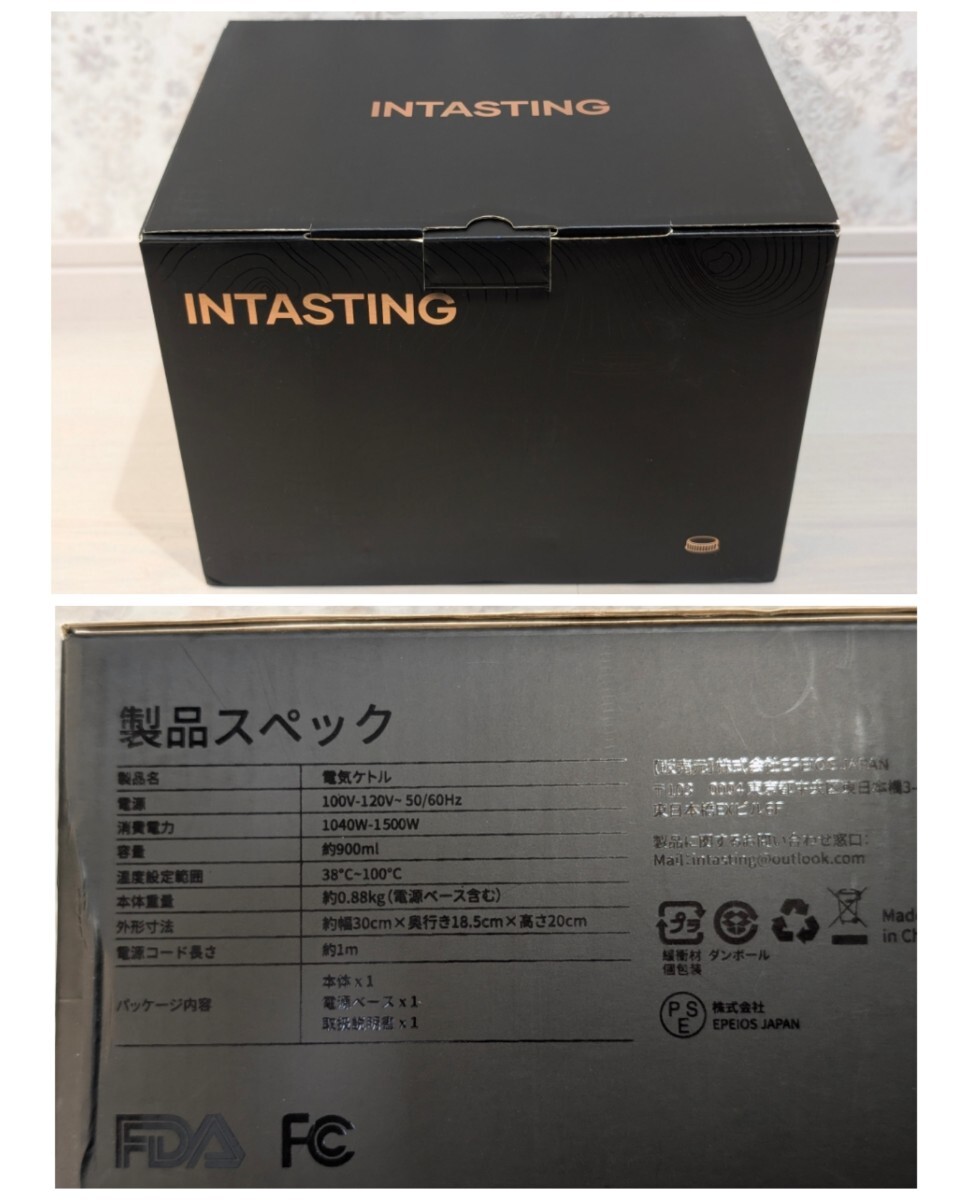 ※こちら箱に株式会社エペイオスジャパンの記載がございますが電気ケトル本体にはエペイオスの印字はございません。神経質な方はお控えくださいませ。