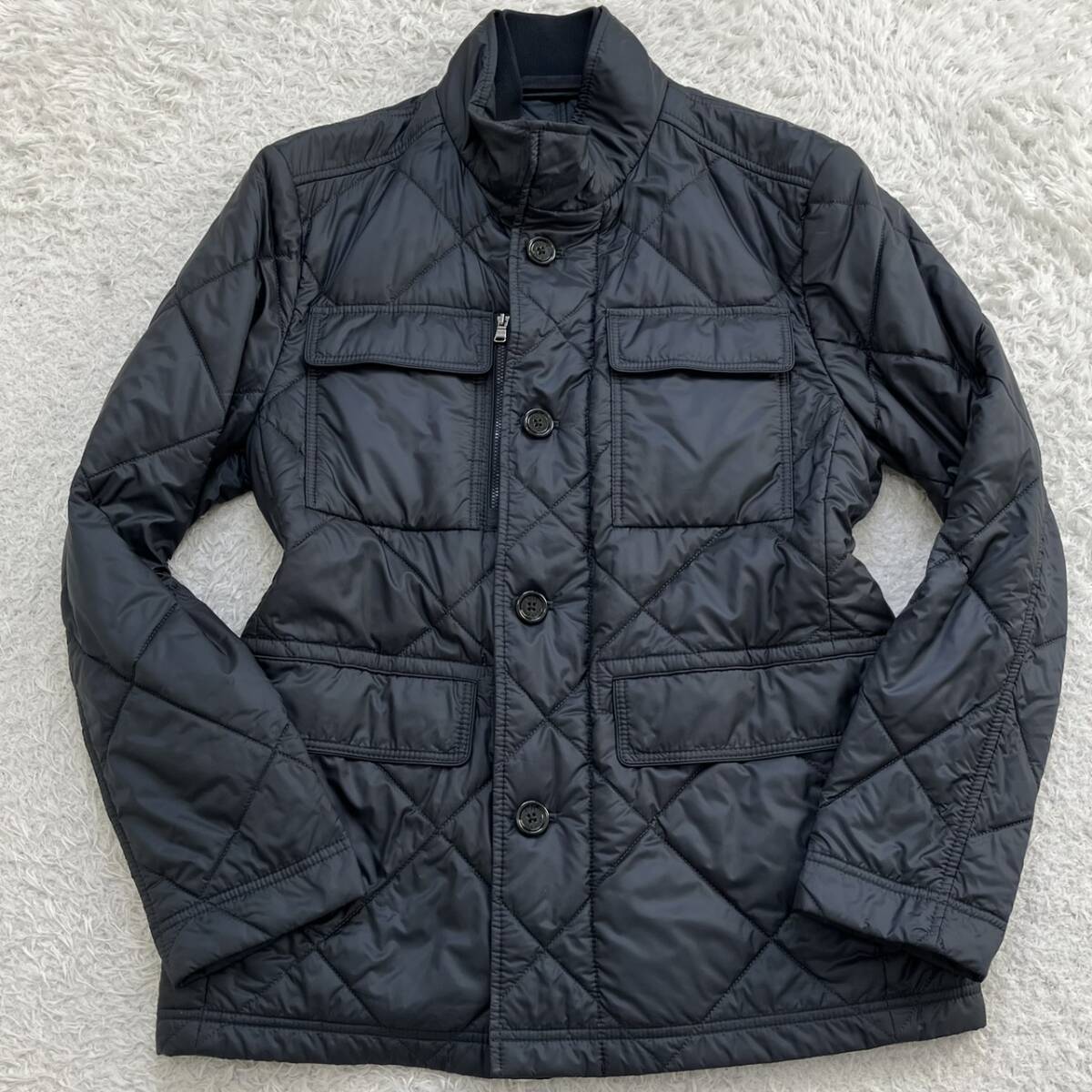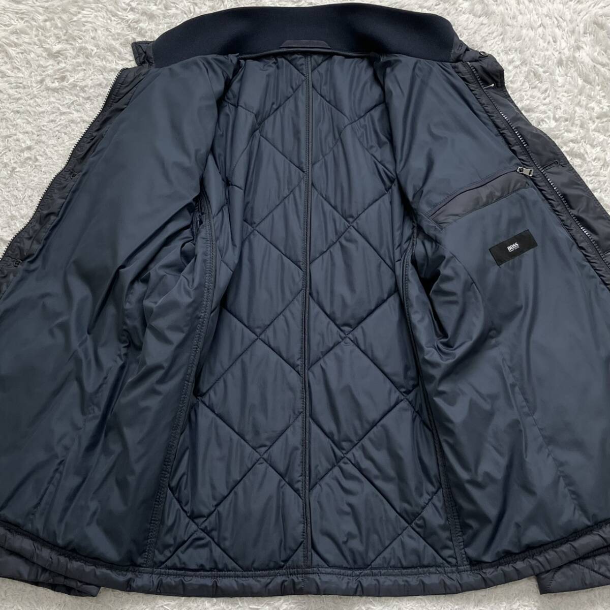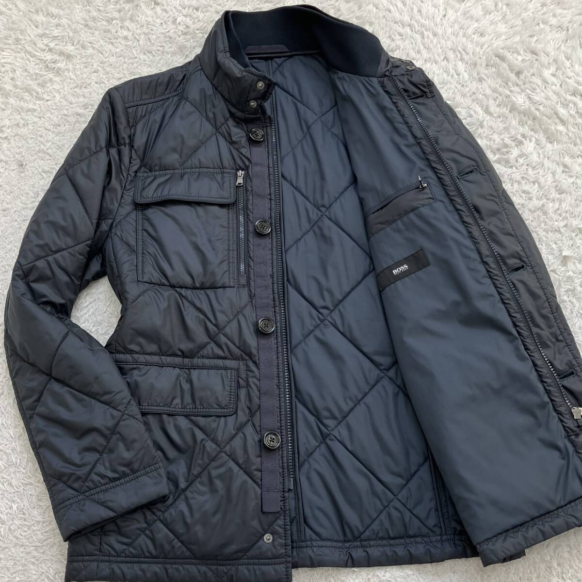 現行!!希少48(L)!!ヒューゴボス HUGO BOSS ダイヤキルティングジャケット アウター ブルゾン 中綿 軽量 撥水 保温 秋冬 メンズ ビジネス 紺
