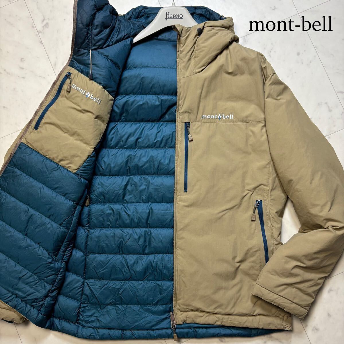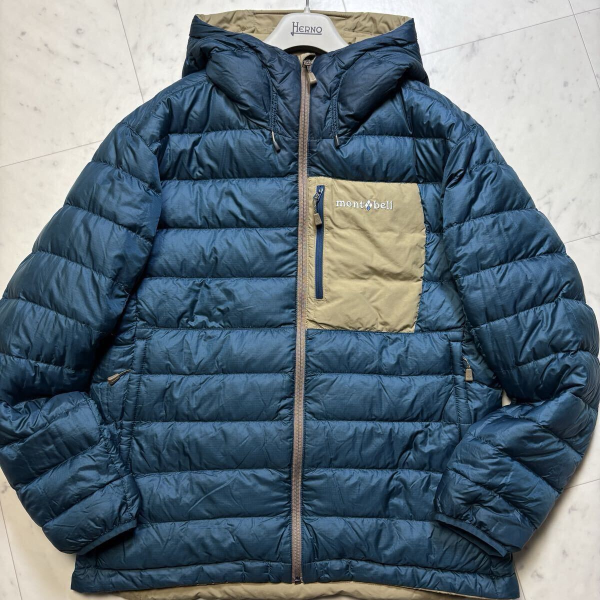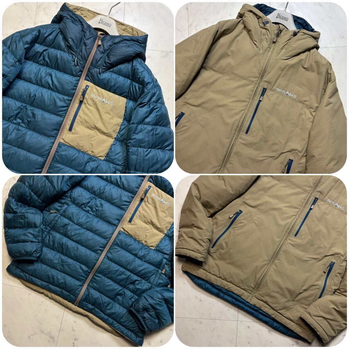モンベル mont-bell コロラドパーカ リバーシブル 2way ダウンジャケット ブルゾン Mサイズ 軽量 アウトドア ベージュ ブルー系 メンズ