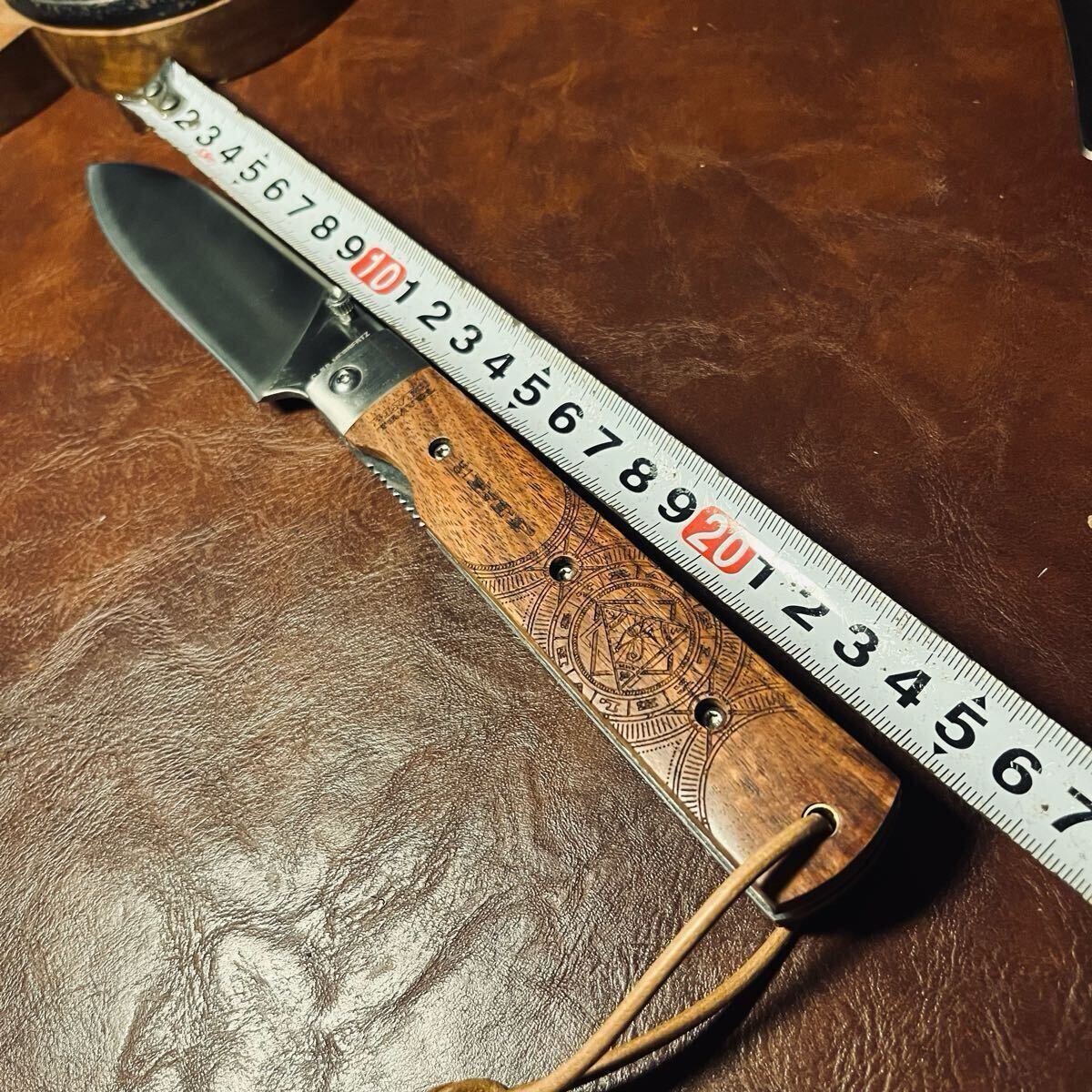 超激レア アウトドア用 超高品質 折りたたみ包丁 長さ25cm 木柄 高級彫刻 鋼刃 キャンプ アウトドア 釣り 野外登山