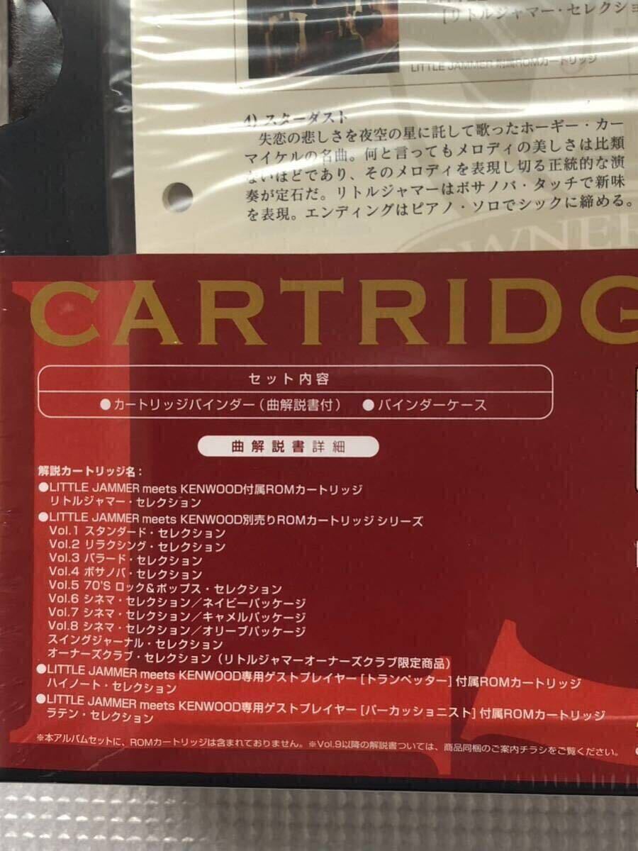 「大切な音を大切に残すために」!リトルジャマーシリーズROMカートリッジ専用の収納アルバムです。最大16本のカートリッジをスマートに収納。LITTLE JAMMER meets KENWOODのレパートリーのうち13カートリッジ、168曲の解説書付き。事典を紐解くように、ジャマーの世界をより深く楽しんでいただくことが出来ます。リトルジャマーシリーズ全カートリッジに対応