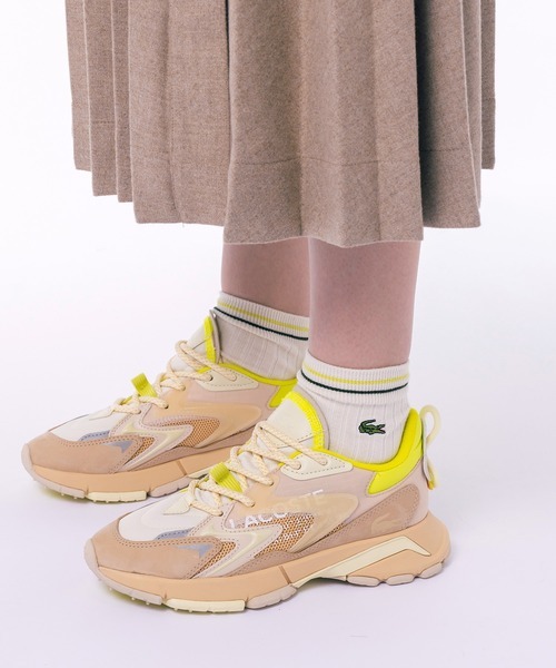 「LACOSTE」 ローカットスニーカー 24.5cm ナチュラル レディース