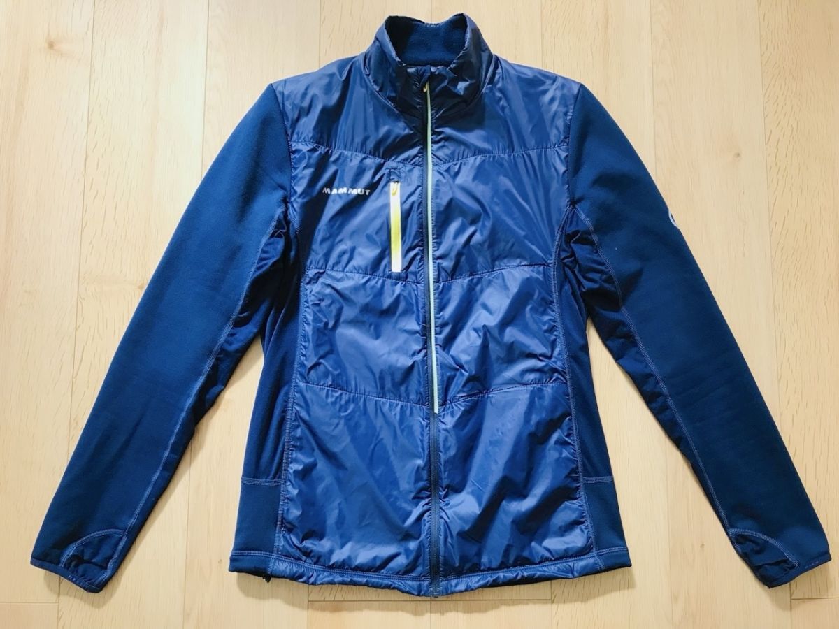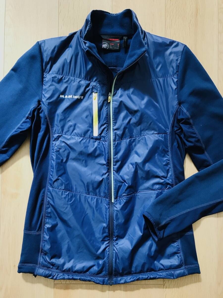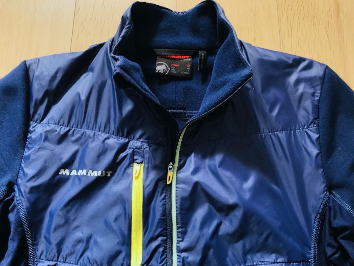 | サイズ | 表記ASIA-L(実寸/肩幅:41cm 身幅:52cm 着丈:69cm 袖丈:66cm)| 色 | ネイビー | 素材 | 本体:ポリエステル88 エラステン12% 部分1:ナイロン100% 部分2:ポリエステル75 エラステン25% 裏地:ポリエステル100% | コンディション | 7.5 | |