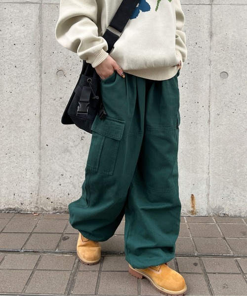 参考商品名:ワイドシルエットカラーカーゴパンツ