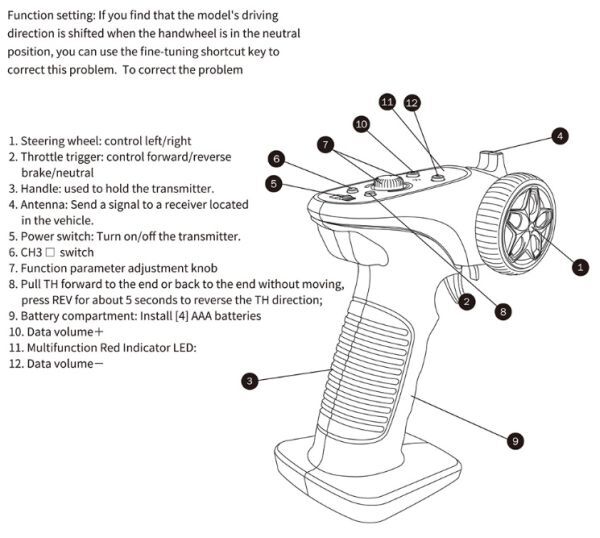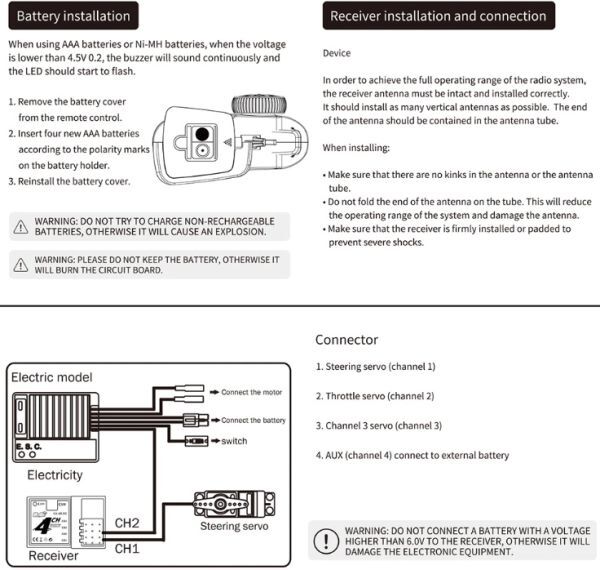 Xw3002: リモコン TX4 2.4GHz 4CH 無線 システム 送信機 ハンドル 操作 リモートコントロール 受信機付き RC カー ラジコン ボート