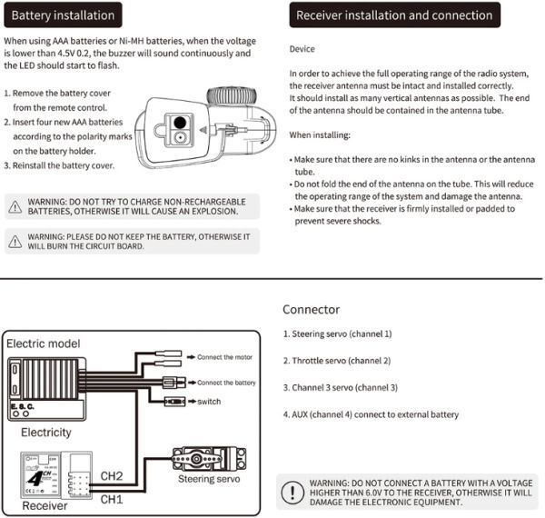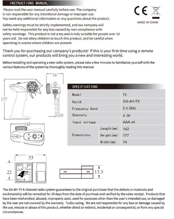 TX4 2.4GHz 4CH 無線システム 送信機 コントローラー リモートコントロール 受信機付き RC カー ボート用