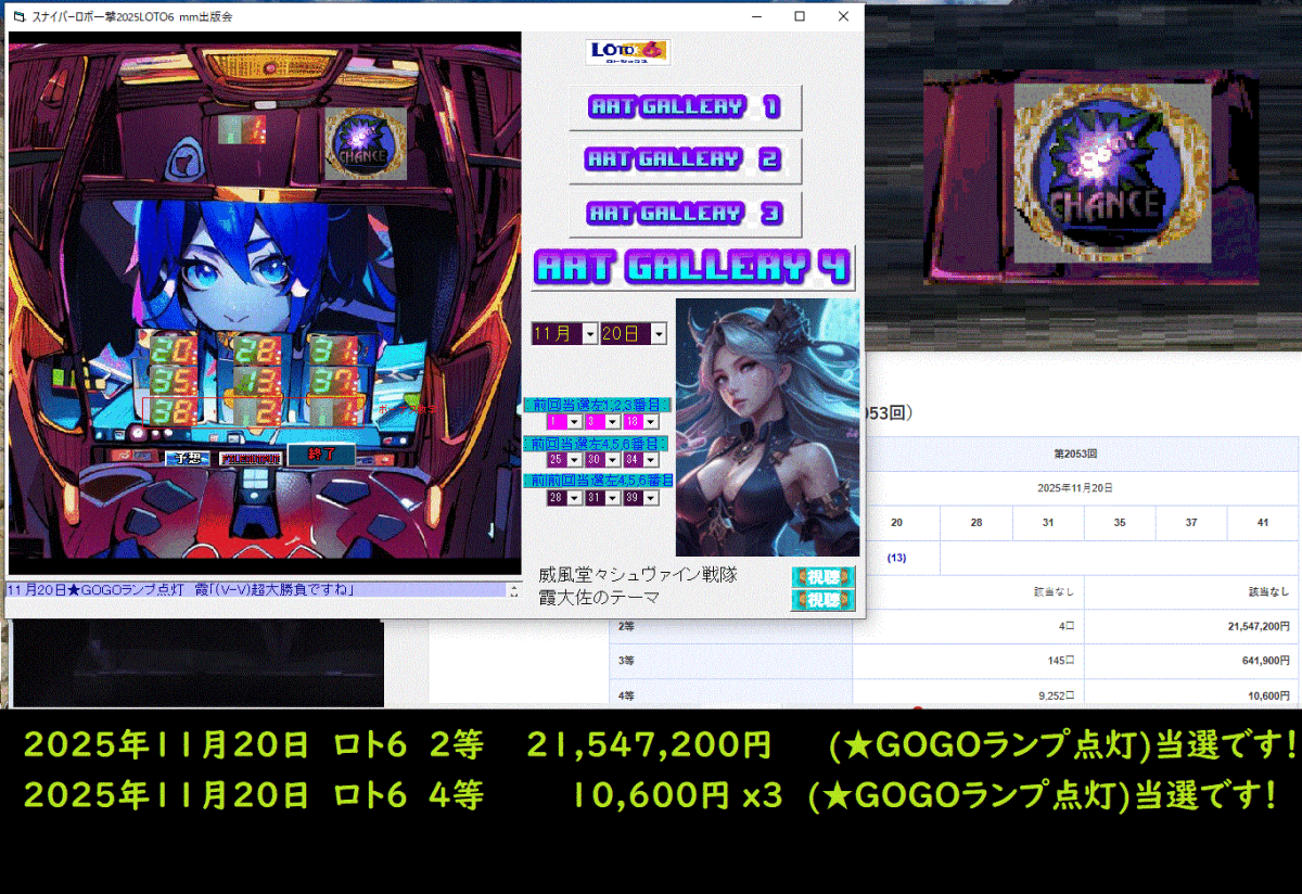 新作 ロト6予想ソフト『スナイパーロボ一撃2025LOTO6』2025年11月20日 ロト6 2等  21,547,200円 (★GOGOランプ点灯)当選です!♪