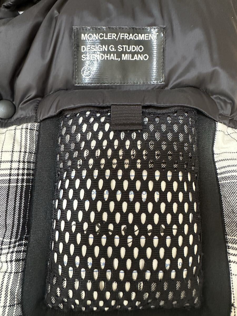 Daxy Giletは、フランネル地にジャガードチェック柄をあしらいMoncler Frgmtレタリングを前面に配し、