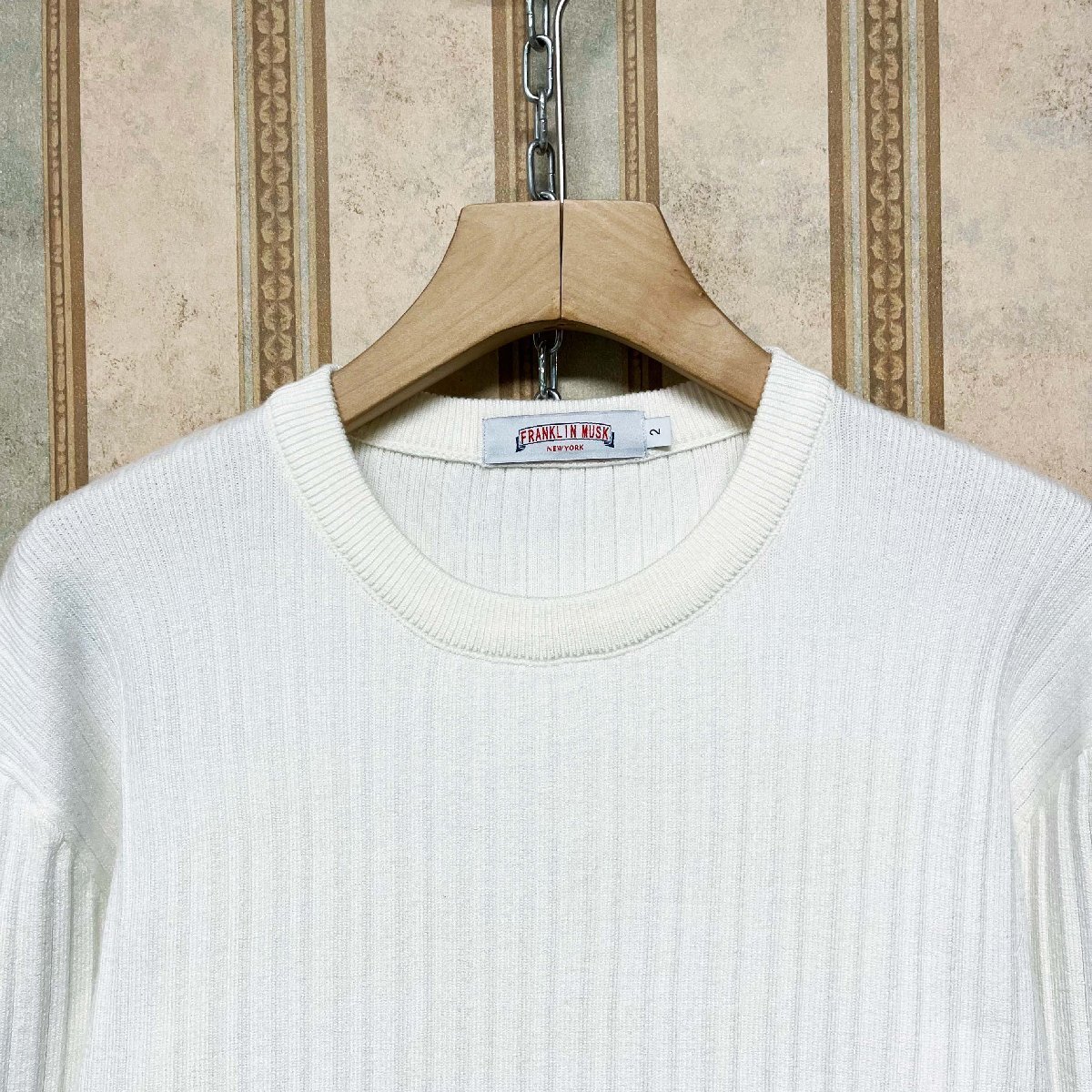 上品 定価4万 FRANKLIN MUSK・アメリカ・ニューヨーク発 セーター ウール混 ソフト ゆったり 無地 丸首 トップス ニート 日常着 サイズ2