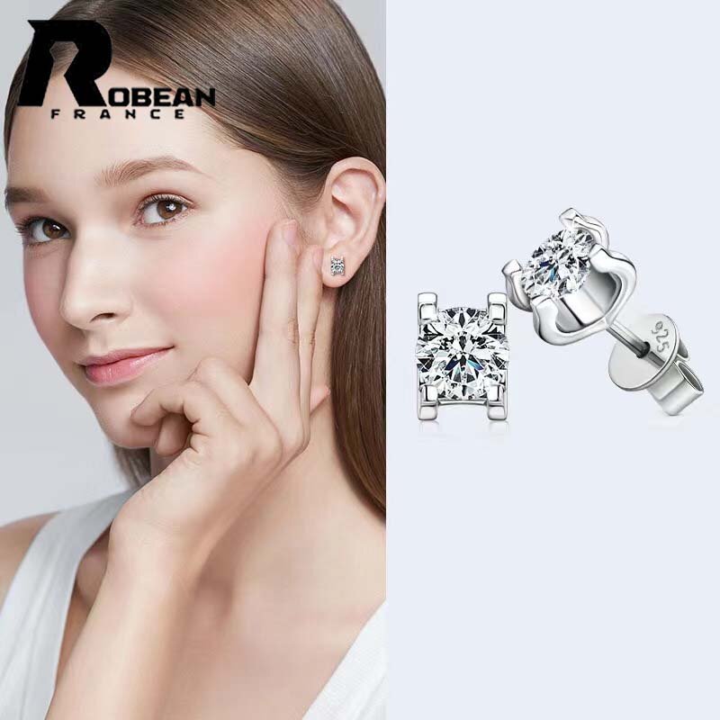 上品 EU製 定価7万円★ROBEAN・人工ダイヤモンド・ピアス★s925 シルバー 合成ダイヤモンド 綺麗 オシャレ プレゼント 6.5mm MS826501