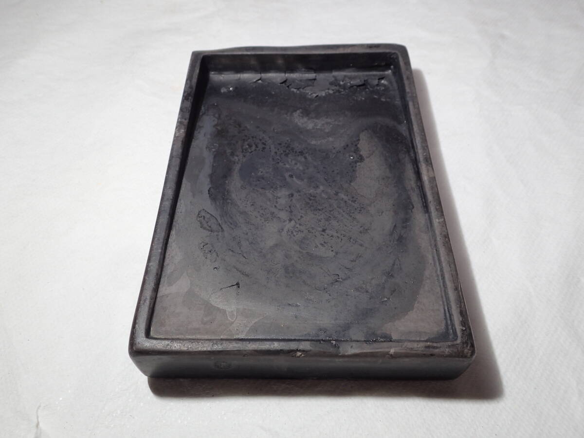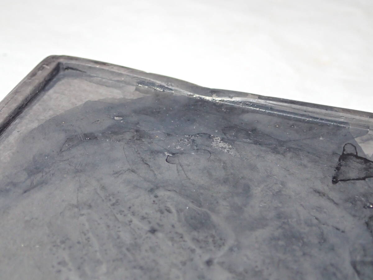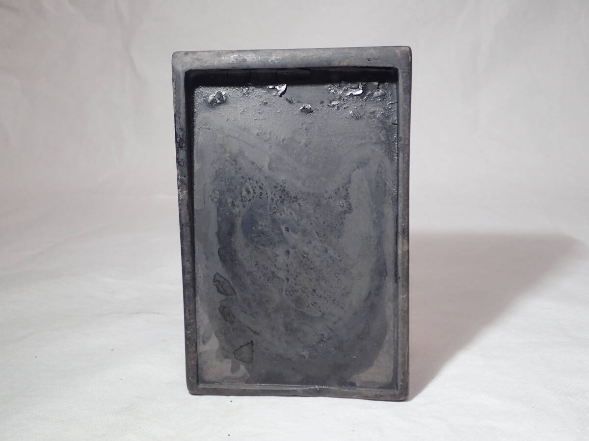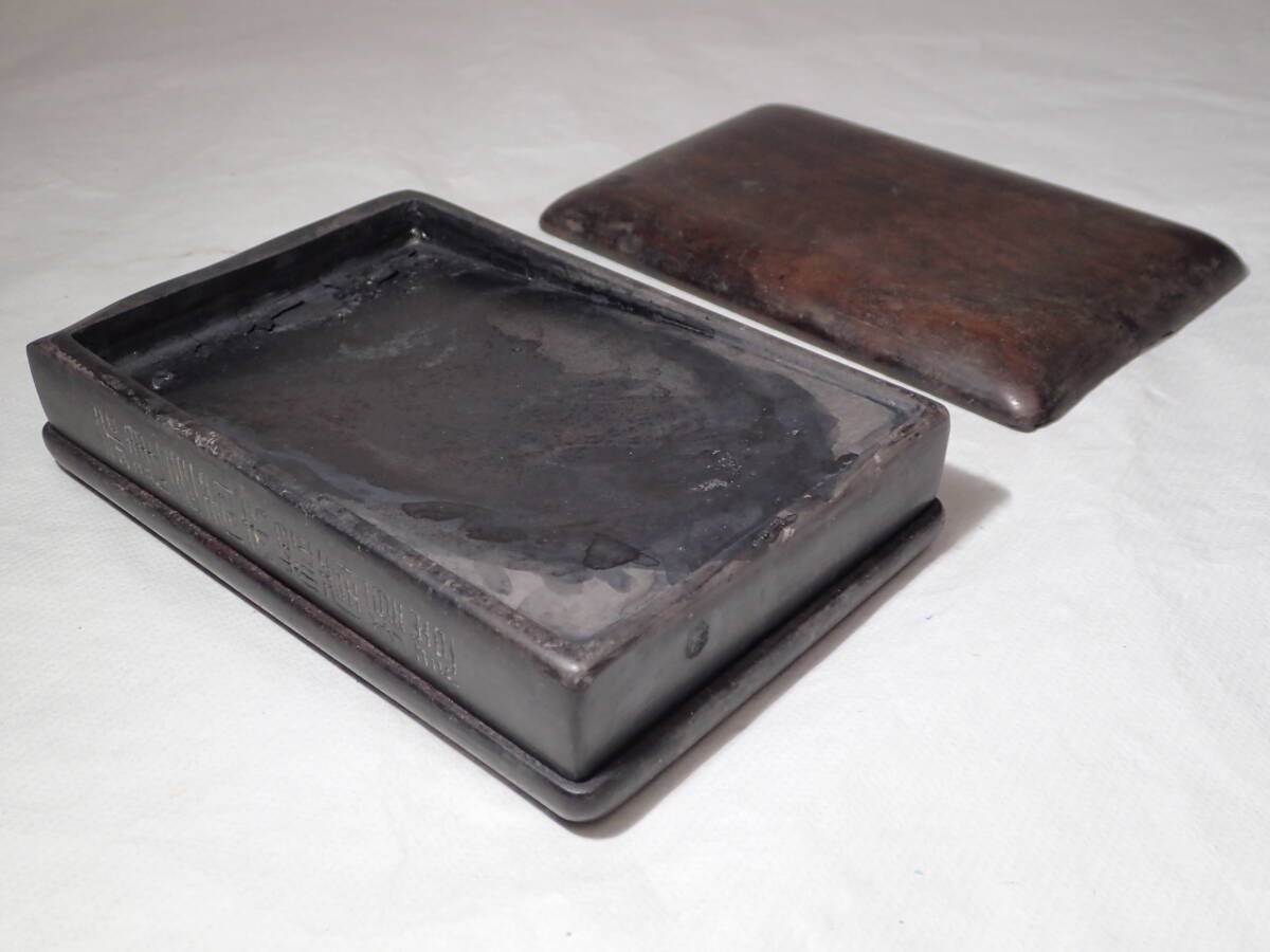 ・硯の裏に漢詩、側面に銘があります。 ・硯には窪み、シミ、汚れ、アタリがあり、 蓋と台座にはカケがありますので、 ご承知の上、入札をお願いします。 16.3cmx10.8cmx厚さ2.5cm ヤフオクだけの出品、他サイトには出品してません。