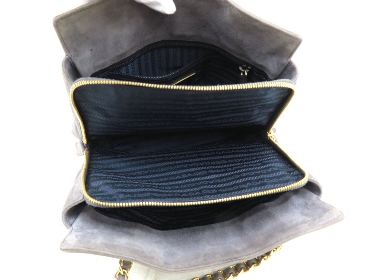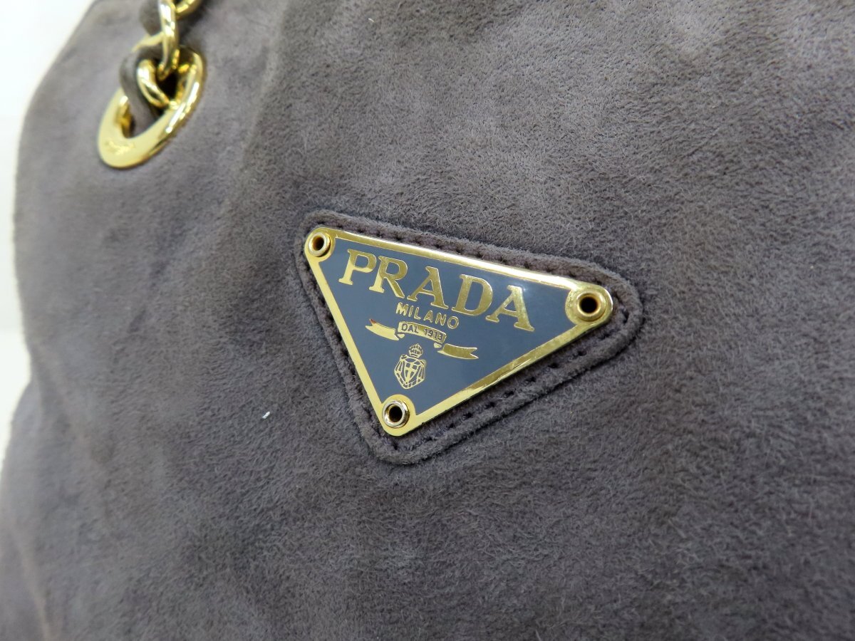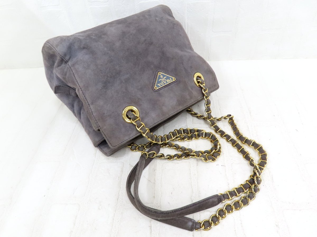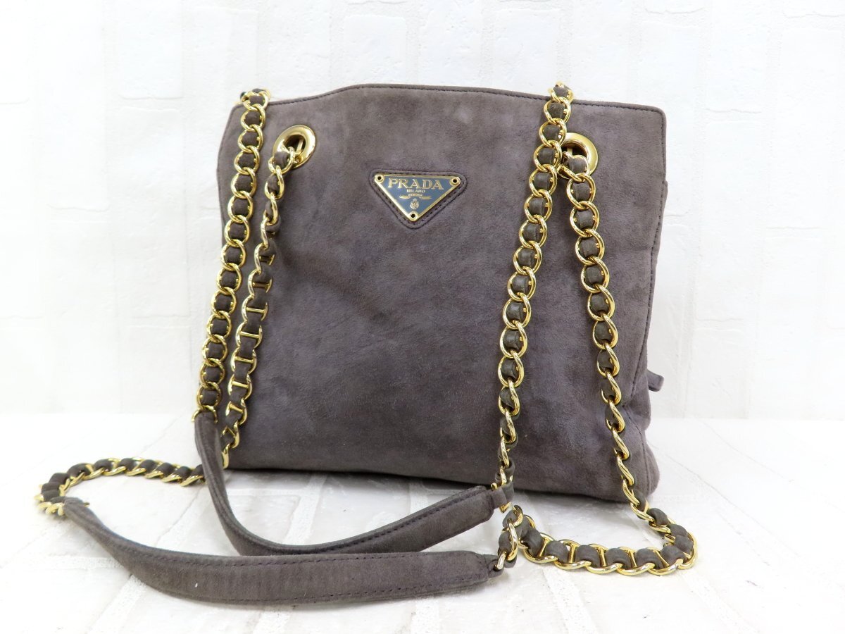 ◆美品◆PRADA プラダ◆スエード レザー 本革◆チェーン ショルダー バッグ◆グレー ゴールド金具◆イタリア製◆ヴィンテージ◆A14388