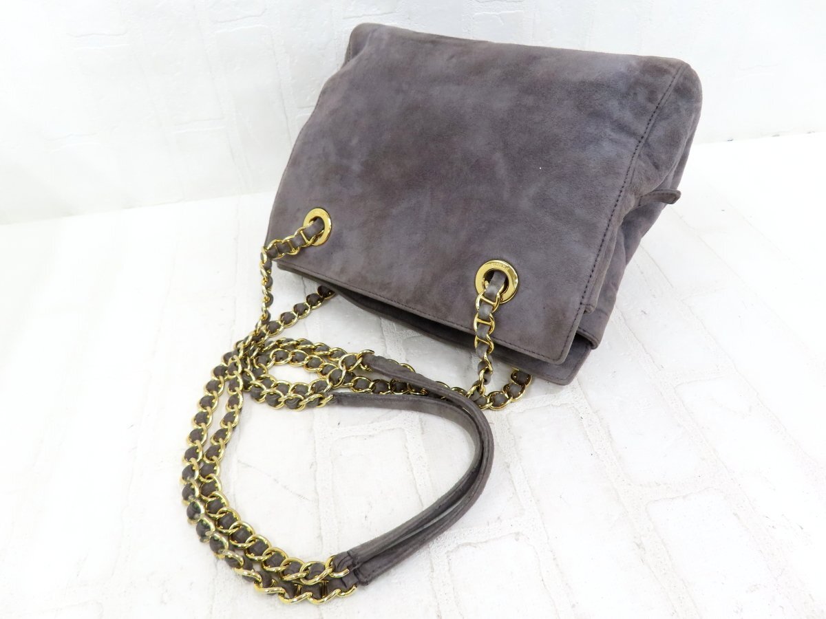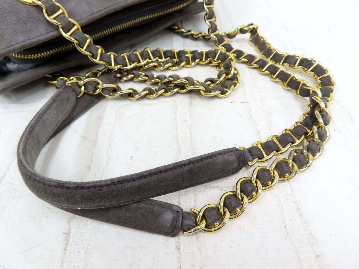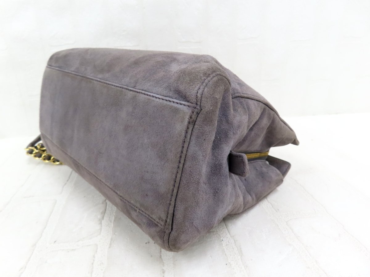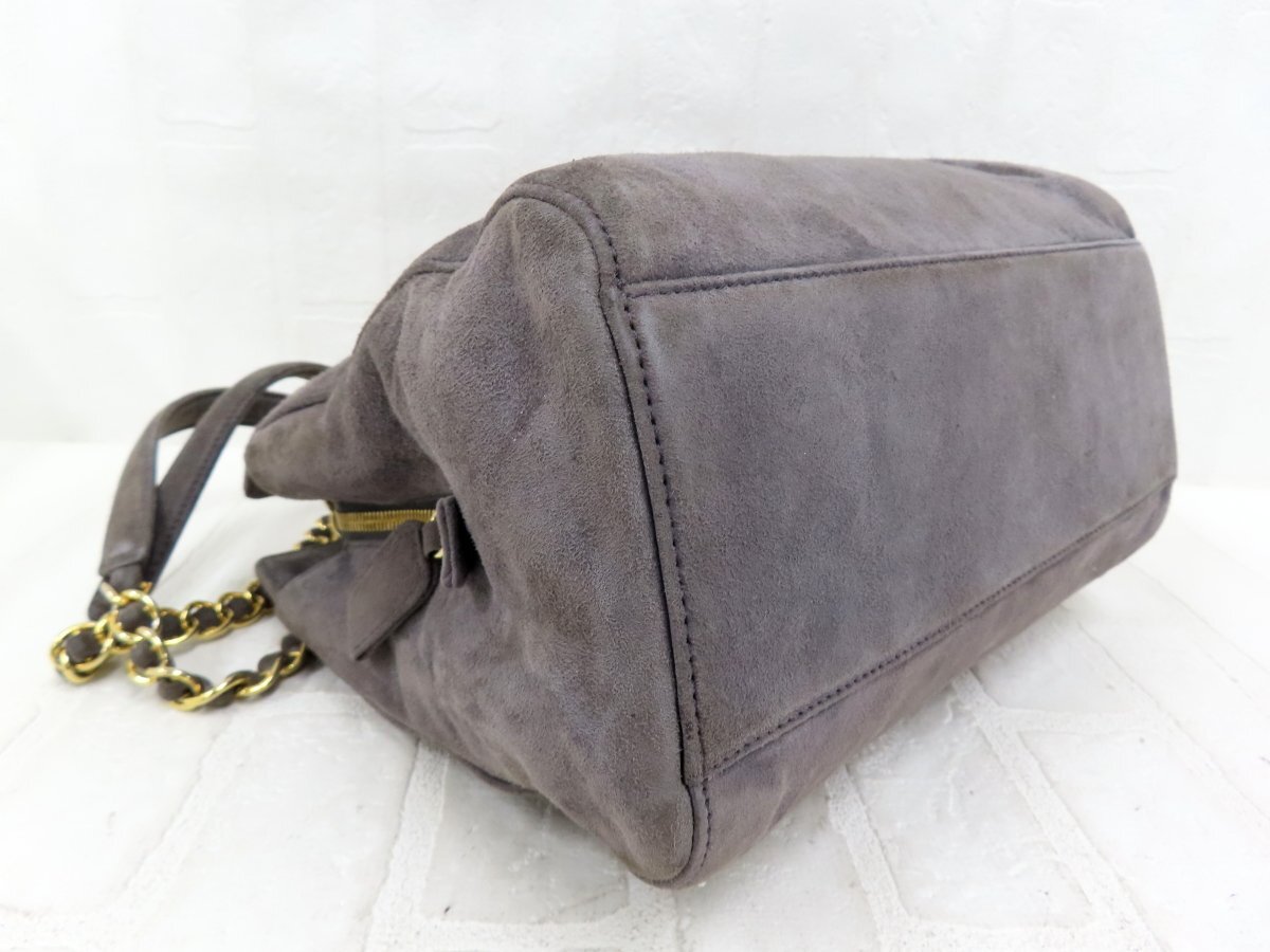 ◆美品◆PRADA プラダ◆スエード レザー 本革◆チェーン ショルダー バッグ◆グレー ゴールド金具◆イタリア製◆ヴィンテージ◆A14388