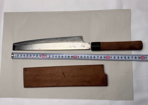 当オークションをご覧頂きありがとうございます。 気持ちの良いお取引を心がけていきたいと思いますので、どうぞよろしくお願い致します。 □トラブル防止のため、最後までお読みください。 □商品内容にご理解頂けない方・落札後にご連絡がない方・一方的に判断する方の入札はお断りします。 商品の状態にご理解頂いた方のみご入札をお願いいたします。 ■セット内容 ・正本 包丁 鞘付き ■コンディション ・少し使用感あります。 ・保管のための油が塗っております。 ※専門店みたいな精度をお求めの方はご入札をお控えください。 ※あくまで、商品説明にある状態以外は未確認です。 ※古いものなのでメンテナンスが前提での入札をよろしくお願いいたします。 ※ノークレームノーリターンにてよろしくお願いします。 以上をご理解の上、ご入札をよろしくお願いいたします。 ■発送 ・佐川急便で発送します。 ※沖縄・離島への発送は別途中継料金が必要になります。 ・上記の内容をご理解ある方のみの入札をお待ちしております。 S25111621