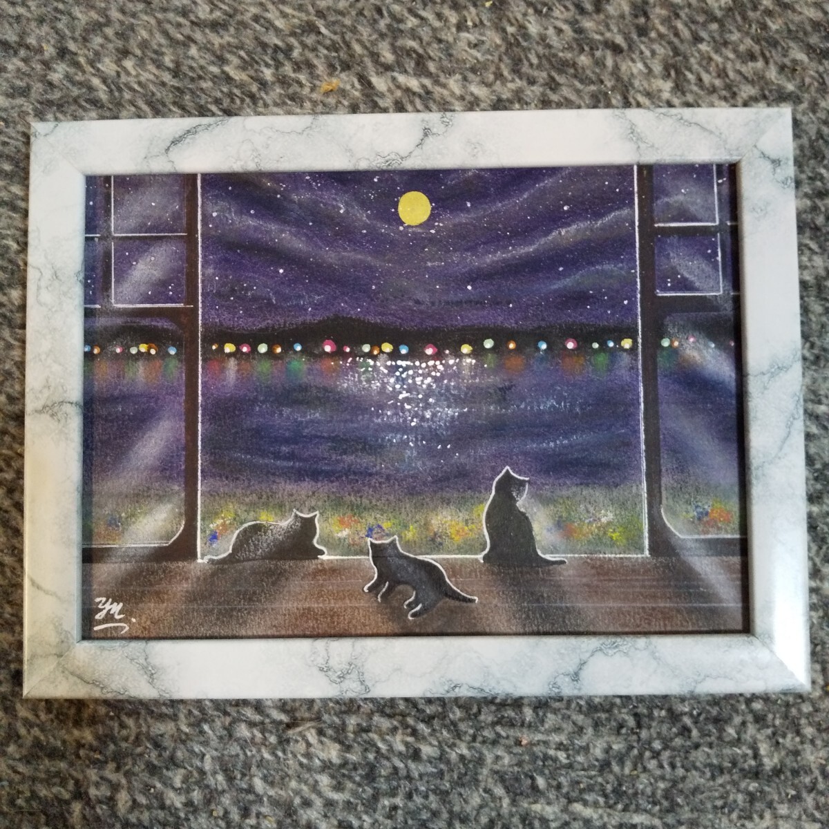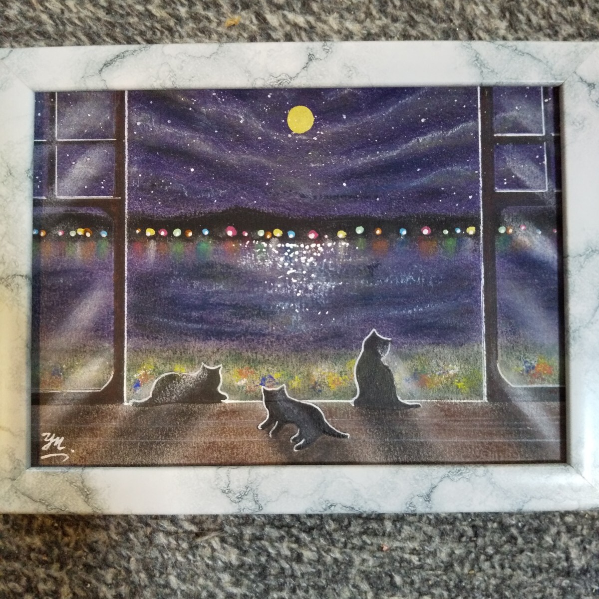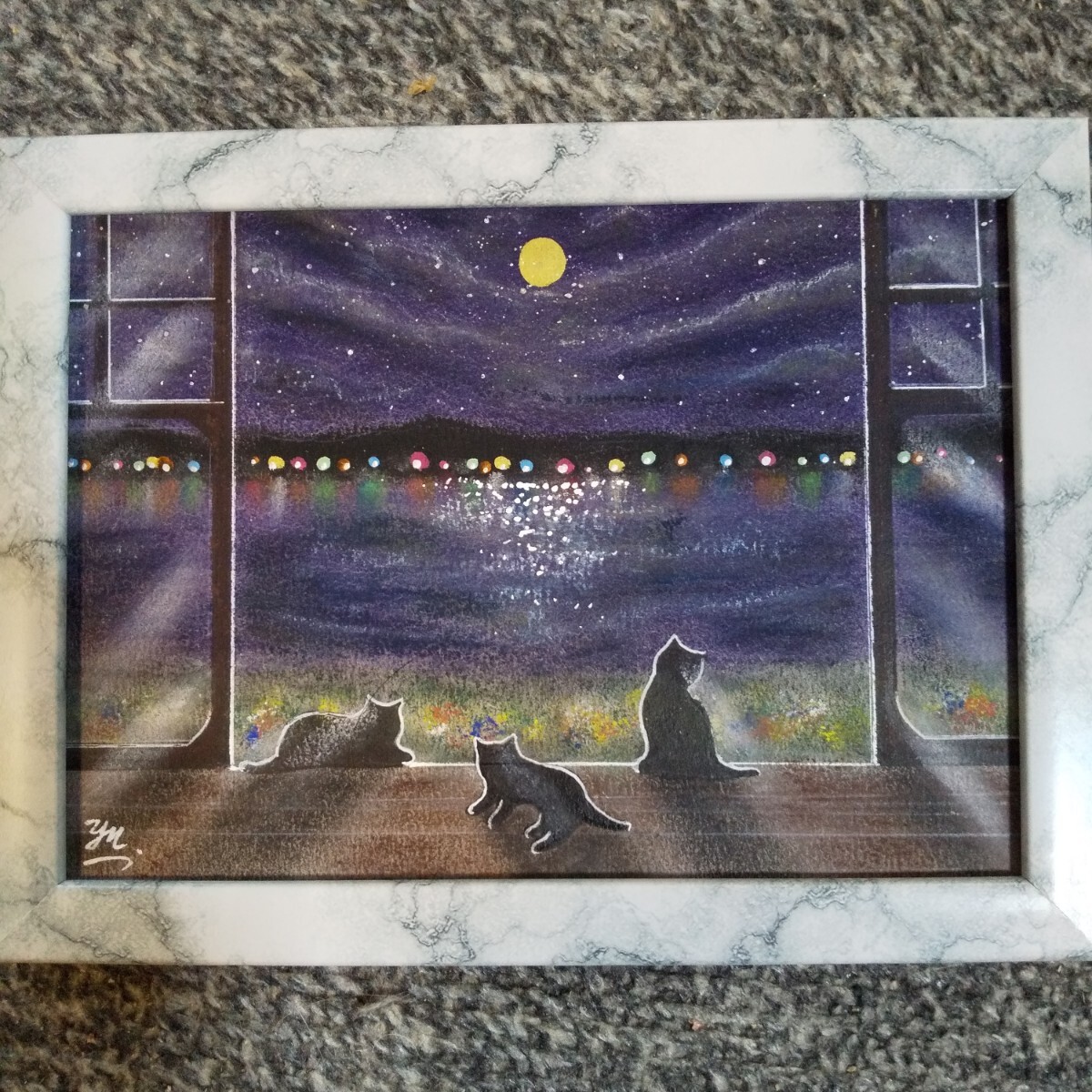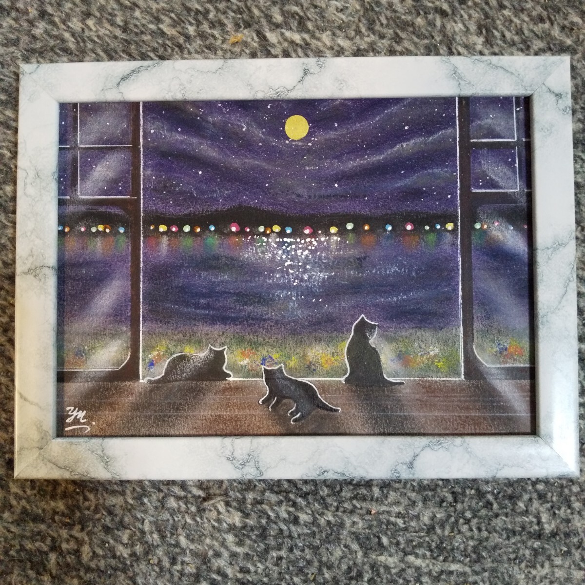 #イラスト #絵画 #星空#星#夜景#月明かり