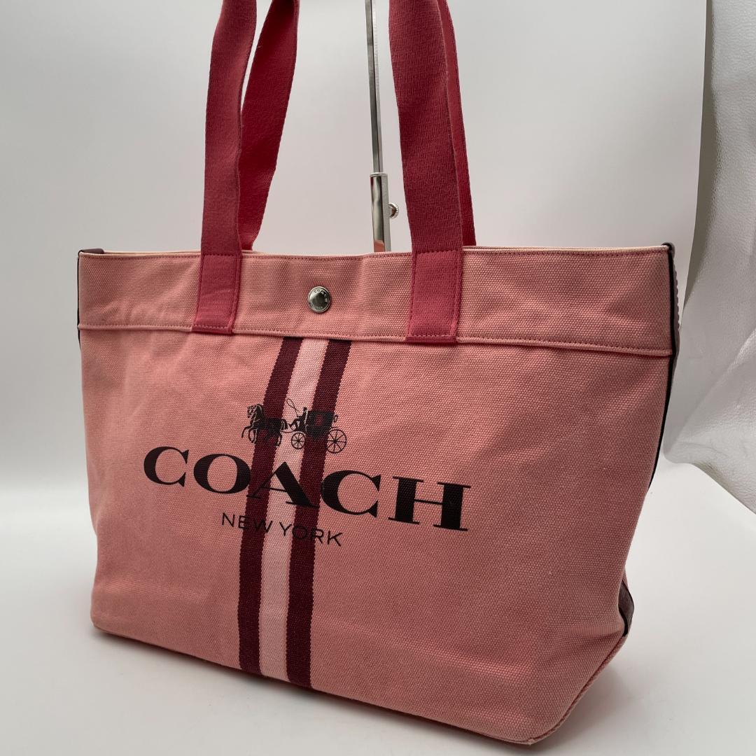COACH トートバッグ キャンバス ピンク 馬車柄 391