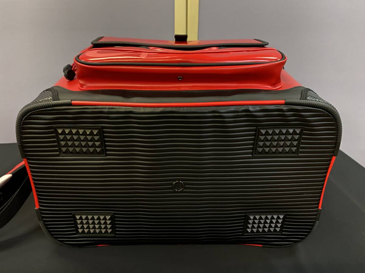 ・前面ポケット部分に汚れあります。ビニール袋に入っていたので、ビニール素材の移り汚れです。(写真参照ください)