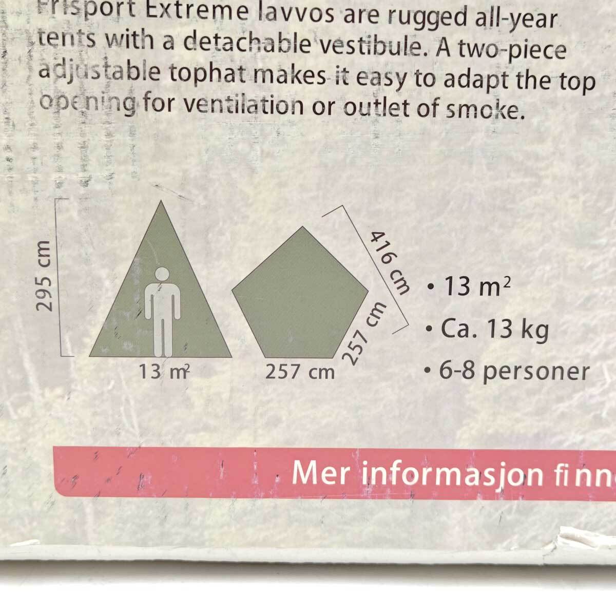 | 【仕様】 ブランド:Frisport フリスポート タイプ:エクストリーム 8 lavvo 8人用ティピーテント グランドシート付 |