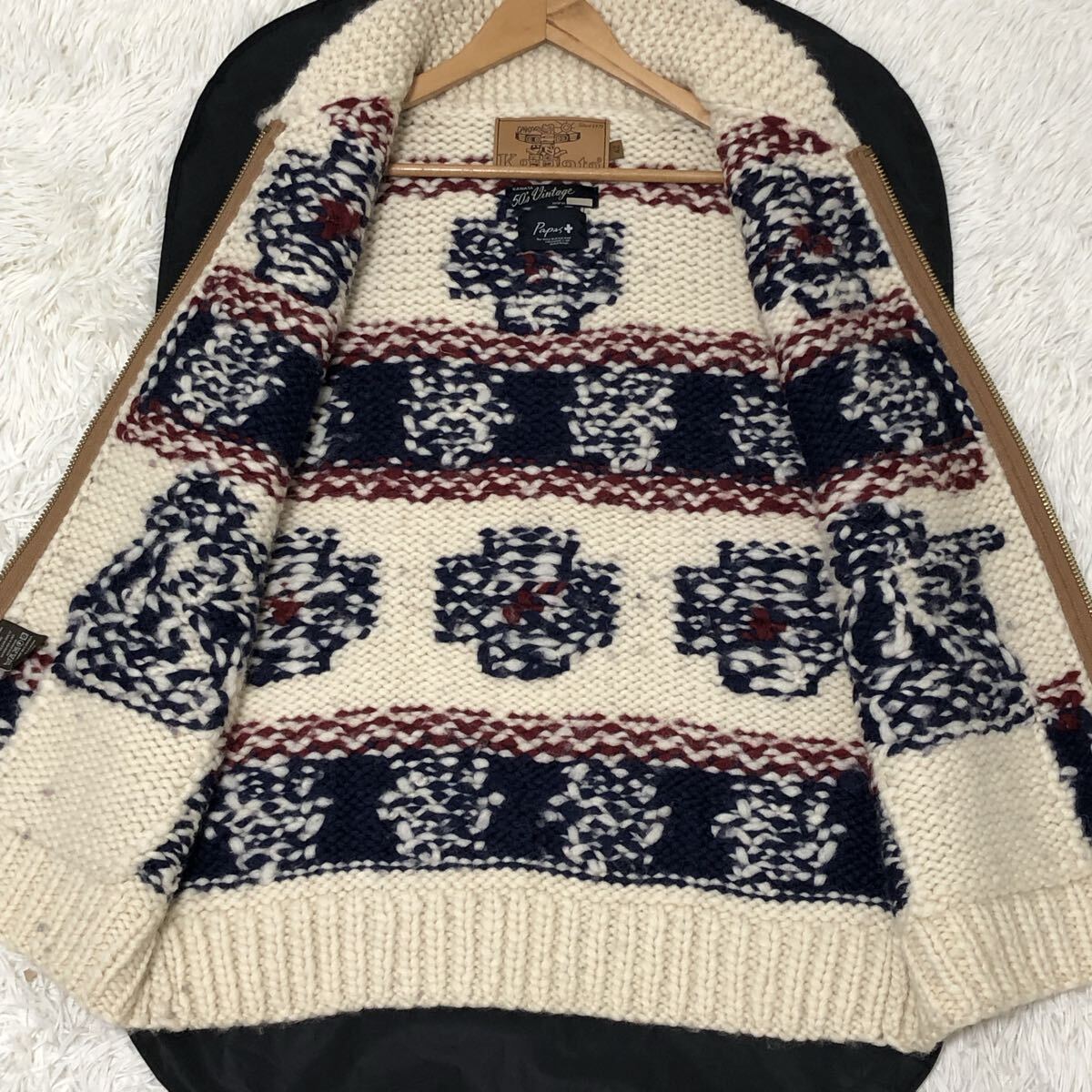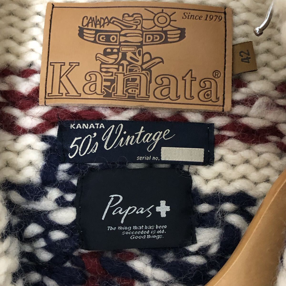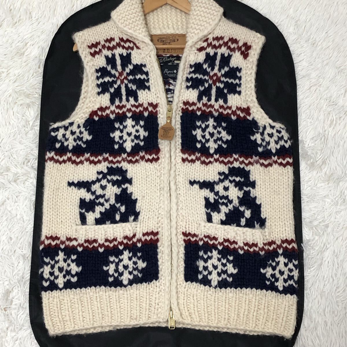 超希少コラボ◎極美品/XL/42サイズ◎Papas+ × Kanata カウチンニット ニットベスト 手編み カナタ 50's vintage パパス ダブルジップ