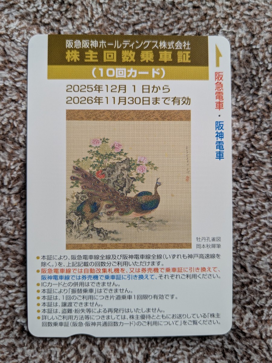 阪急阪神ホールディングス株式会社株主優待回数乗車証10回の出品です。
