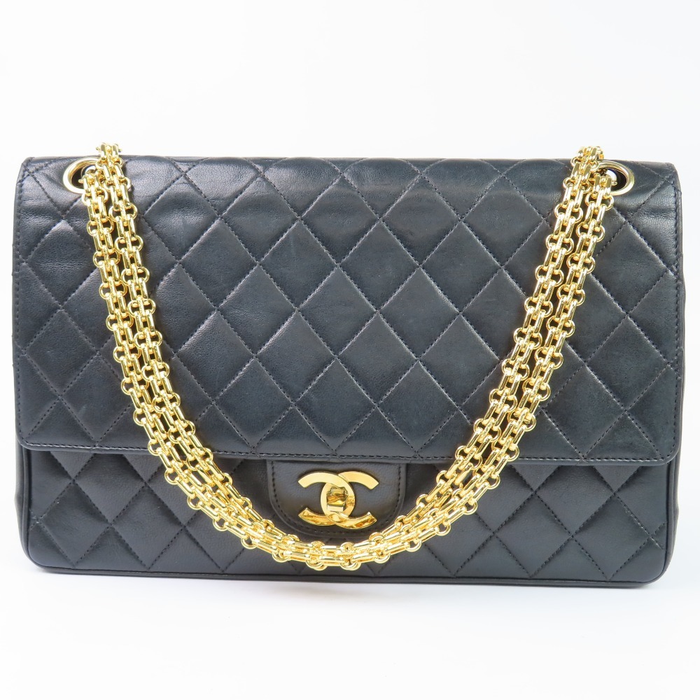 204128★1円スタート★CHANEL シャネル 外極美品 Wフラップ マトラッセ ココマーク ターンロック チェーンショルダーバッグ