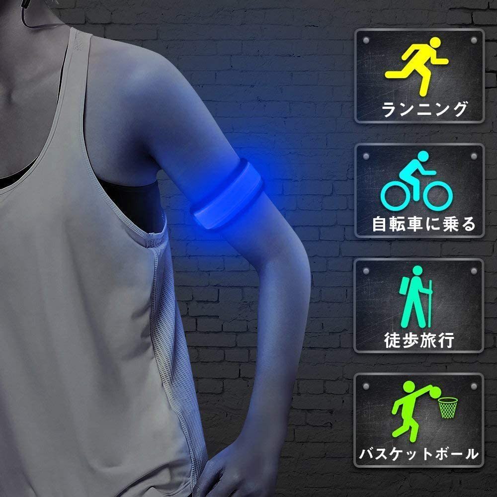 【送料コミコミ】 光る アームバンド ホワイト LEDライト 反射バンド リストバンド 夜間 散歩 犬の散歩 ランニング ウォーキング