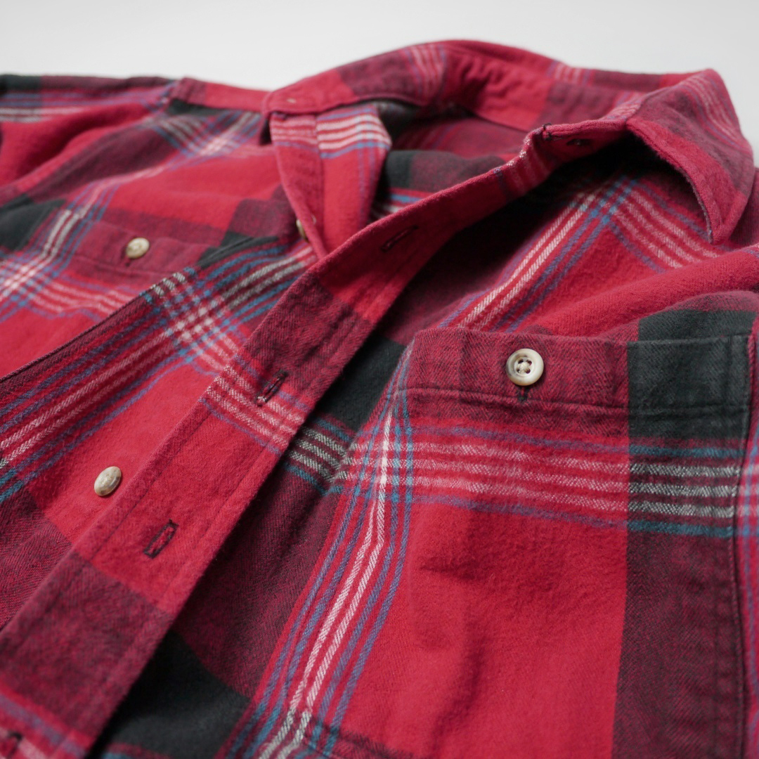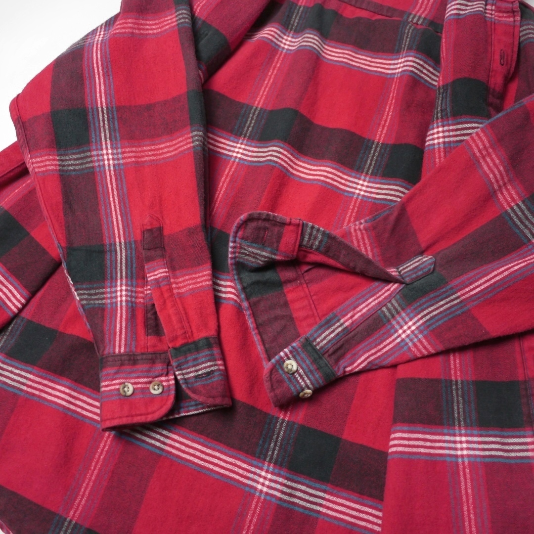 ■ブランド 90s、STJOHN’SBAY ■カラー 赤黒系、フェードレッド×ブラック×ホワイト×ブルー系 ■素材 100% COTTON ■詳細 アメリカで購入したセントジョンズベイのネルシャツです。 90年代ごろの旧タグでレアなヘリンボーンのタイプになります。 生地はオールコットンフランネル、いわゆるヘビーネル系でミディアムウェイトくらいの感じだと思います。人気のビッグサイズ/オーバーサイズです!! ■状態 多少の毛玉と毛羽立ち、フェード、アタリ、特筆すべきダメージはなく良好です。 イイ感じに雰囲気よく経年変化しております。 ■サイズ 表記 XL *実寸参考下さい (着用感XL-相当、着丈身幅はXXLくらいだと思います) 着丈 79cm 肩幅 51cm 身幅 68cm 胴幅 64cm 裄丈 84cm 脇袖丈 49cm 肩袖丈 58cm ■注意事項 状態は細かく確認しておりますが、傷や汚れの見落とし、実寸誤差、色味差異など生じる場合がございます。 不明な点がありましたら入札前にご質問下さい。 商品にあわせて洗濯やクリーニングメンテナンスを施しておりますが、ビンテージやアンティークなど中古品になりますので特性のご理解をお願いします。 |