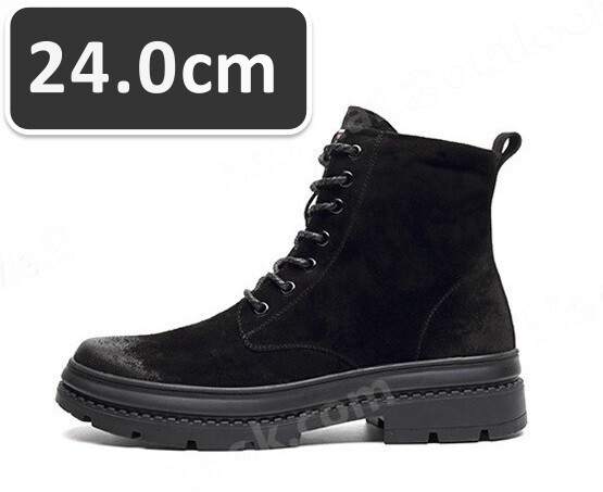 サイドジッパー付 牛本革 メンズ シュートブーツ ブラック サイズ 24.0cm カジュアル 屈曲性 通勤 軽量 インポート品【n030】