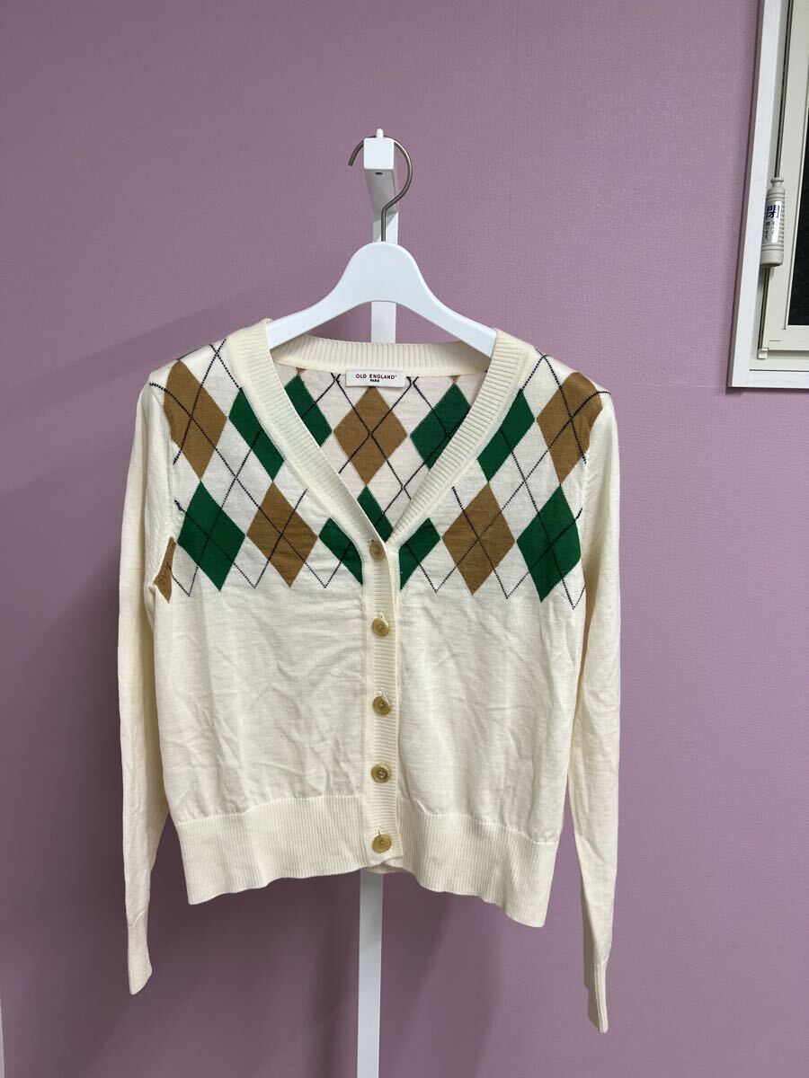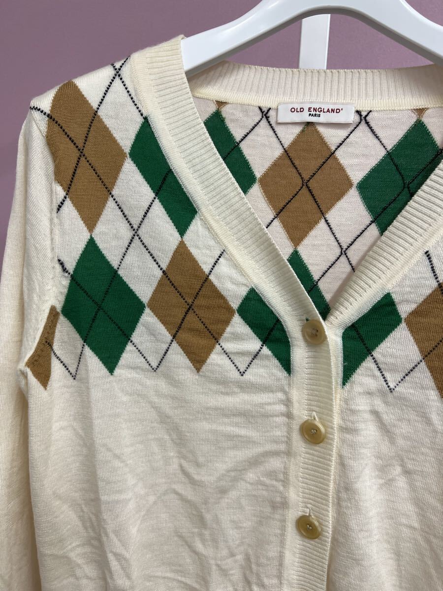 OLD ENGLAND オールドイングランド アーガイル柄カーディガン 36