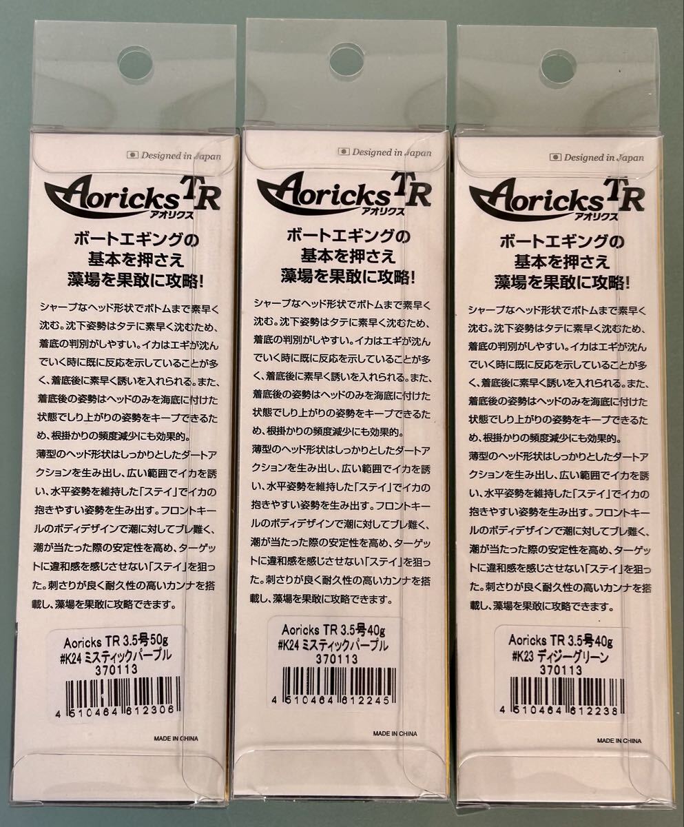 多様なサイズとカラーのAoricks TRエギ、ボートエギングに最適。