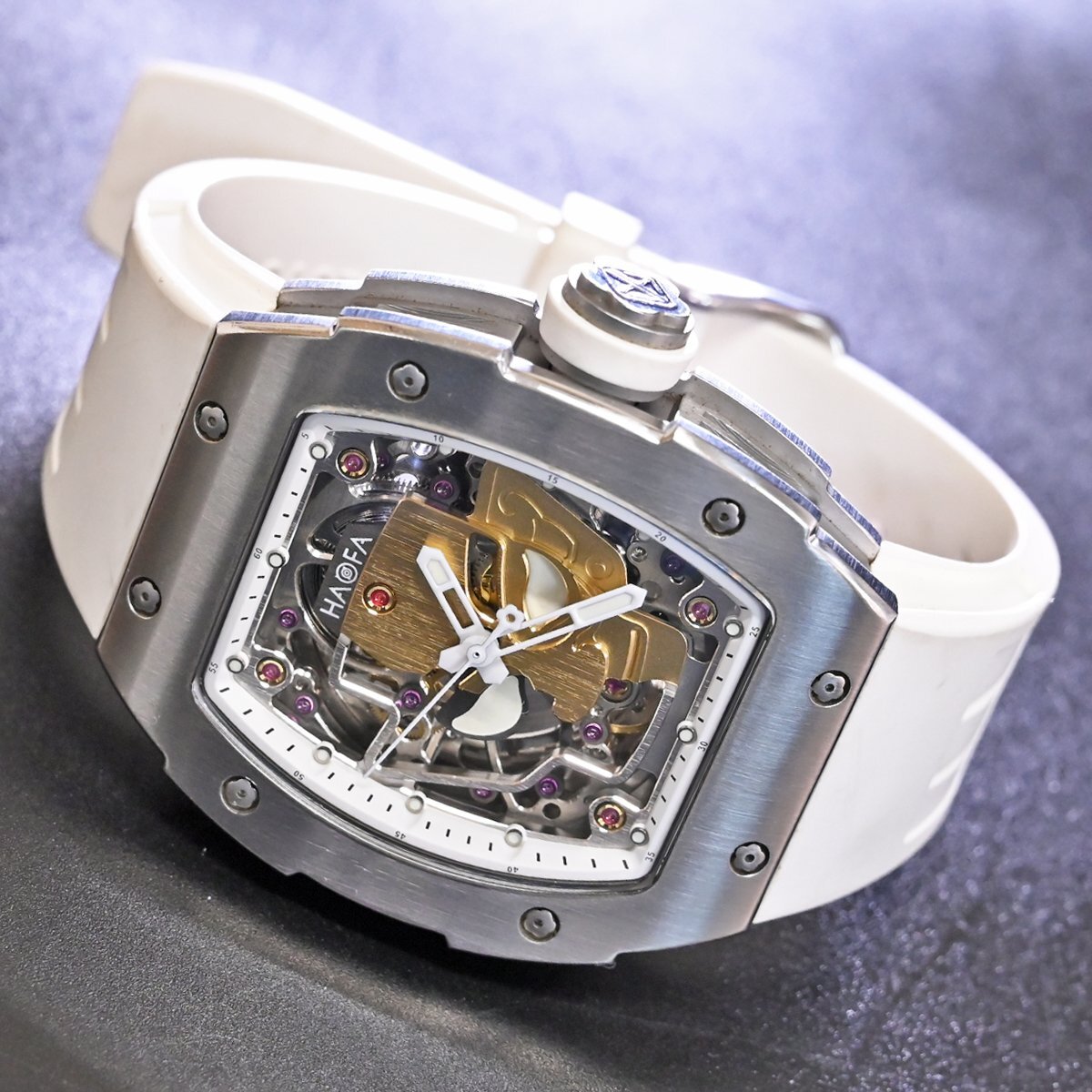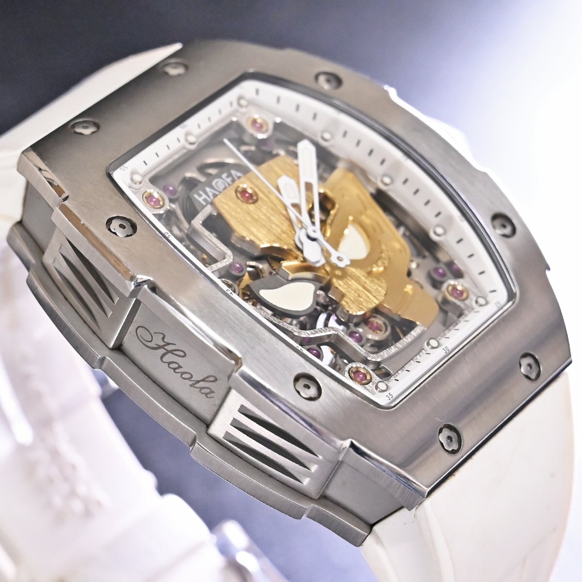 HAOFAの両面スケルトン オートマティック トノーです。 時間を測るだけでなく祝う世界へようこそ Haofa Time Tales へようこそ。 ――これは、時計の世界への魅惑的な旅です。 各エピソードでは、Haofaの時計にまつわる魅力的なストーリーが明かされます。 デザインのインスピレーション、革新的な技術、そしてそれぞれの時計を形作る豊かな歴史といった、精緻なディテールを深く掘り下げてご覧ください。 Haofaブランドを象徴する芸術性、職人技、そして情熱を探求する旅に、ぜひご参加ください。 ※基本動作確認済。 |
