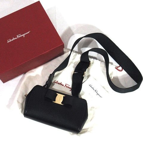 | ☆未使用☆Salvatore Ferragamo フェラガモ*本革*VARA*ヴァラ*リボン*ボディバッグ*ウエストポーチ*クロスボディ*黒*箱/保存袋/取説付き |