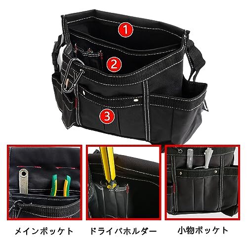 ブラック 腰袋 工具入れ 腰袋 ベルト付き たくさん工具入れ 多機能ポケット ウエストポーチ 仕事用でき