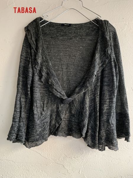◆N23◆TABASA タバサ 麻混素材 ニットショート丈カーディガン ボレロ風 グレー系