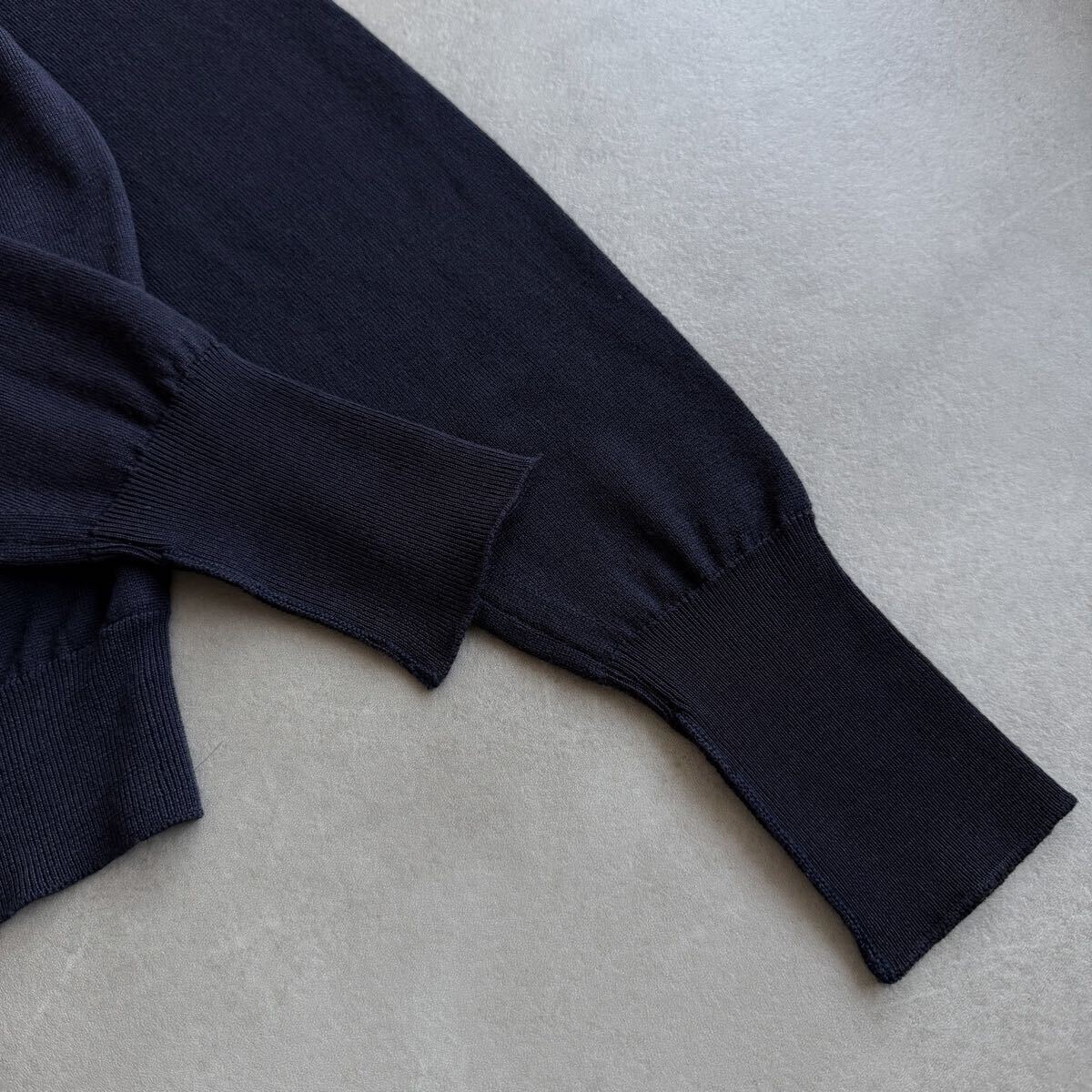 大人の色気漂うネイビーカラーは、ビジネススタイルにはもちろん、カジュアルなコーディネートにも自然に溶け込みます。ジャケットのインナーとしても美しく映え、都会的で洗練された雰囲気を演出。