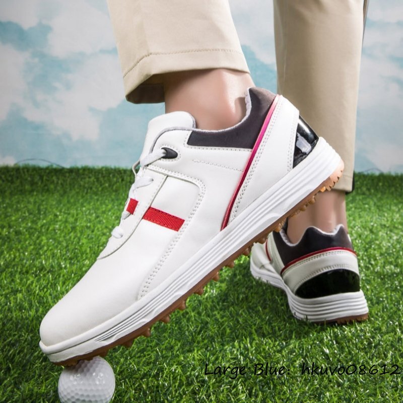 希少品■ゴルフシューズ 男女兼用 スニーカー スポーツシューズ Golf shoes 切替 メンズ 紳士靴 運動靴 幅広 防滑 耐磨撥水 白/赤 25.5cm