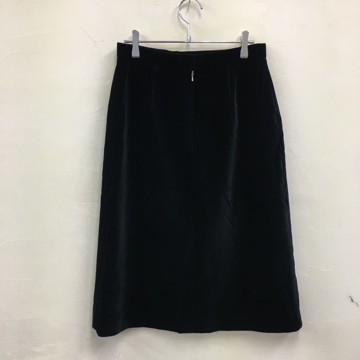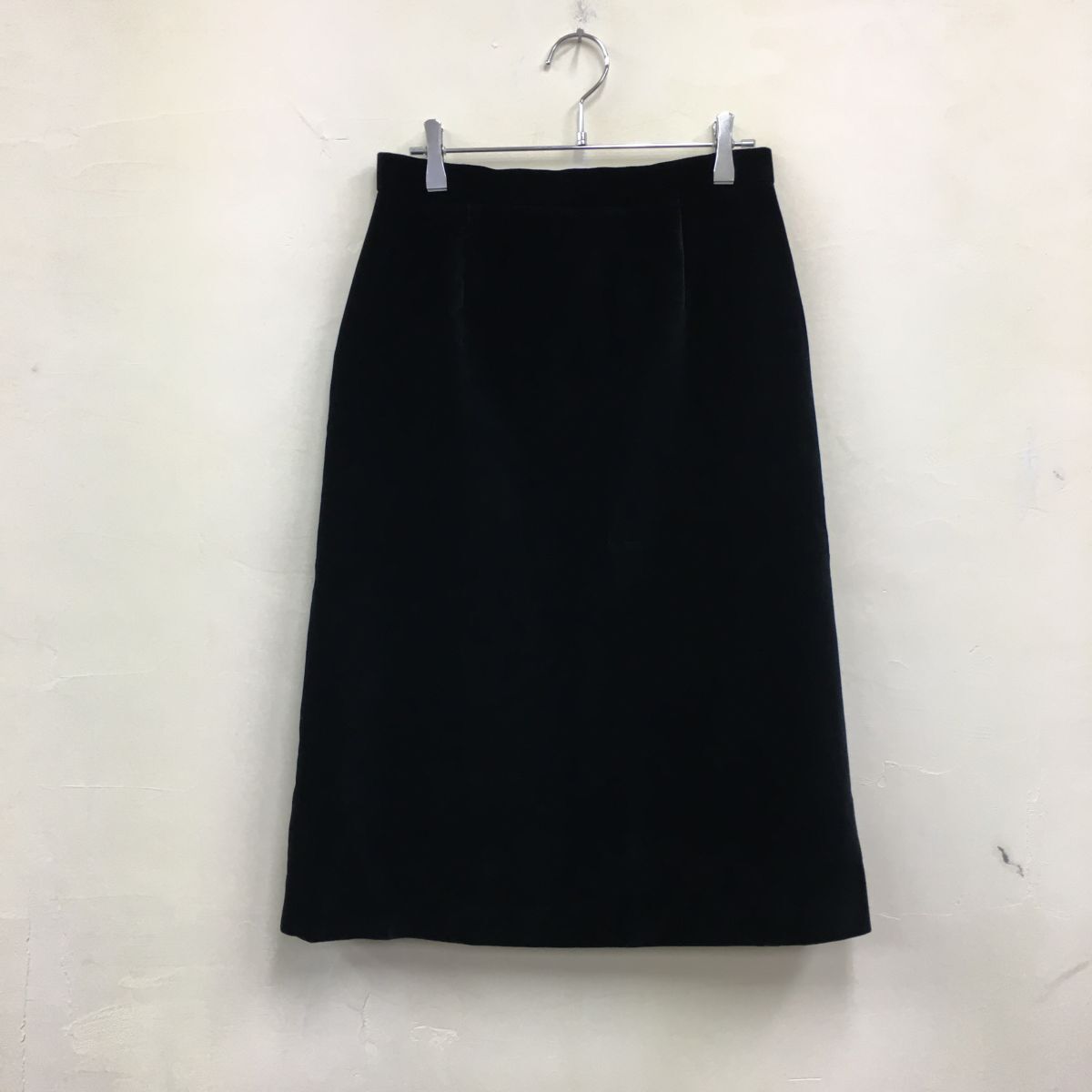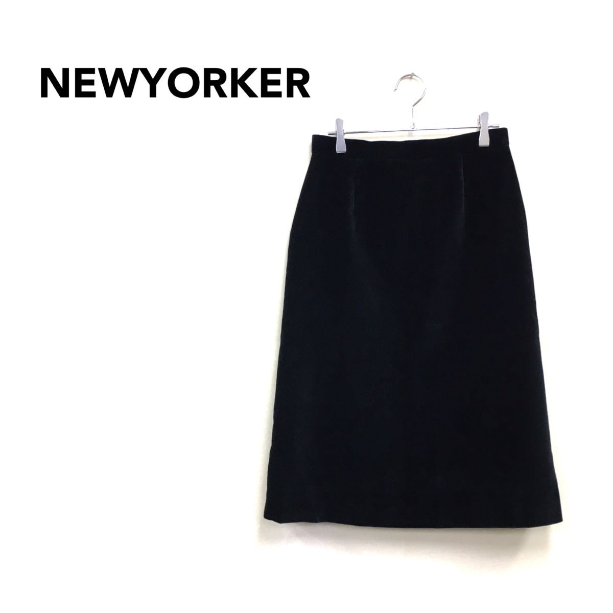 2N2143-G◆ NEWYORKER ニューヨーカー ベロアスカート 膝下丈 ミドル ストレート ファスナー 無地 シンプル ◆ size13 黒 綿 ポリエステル
