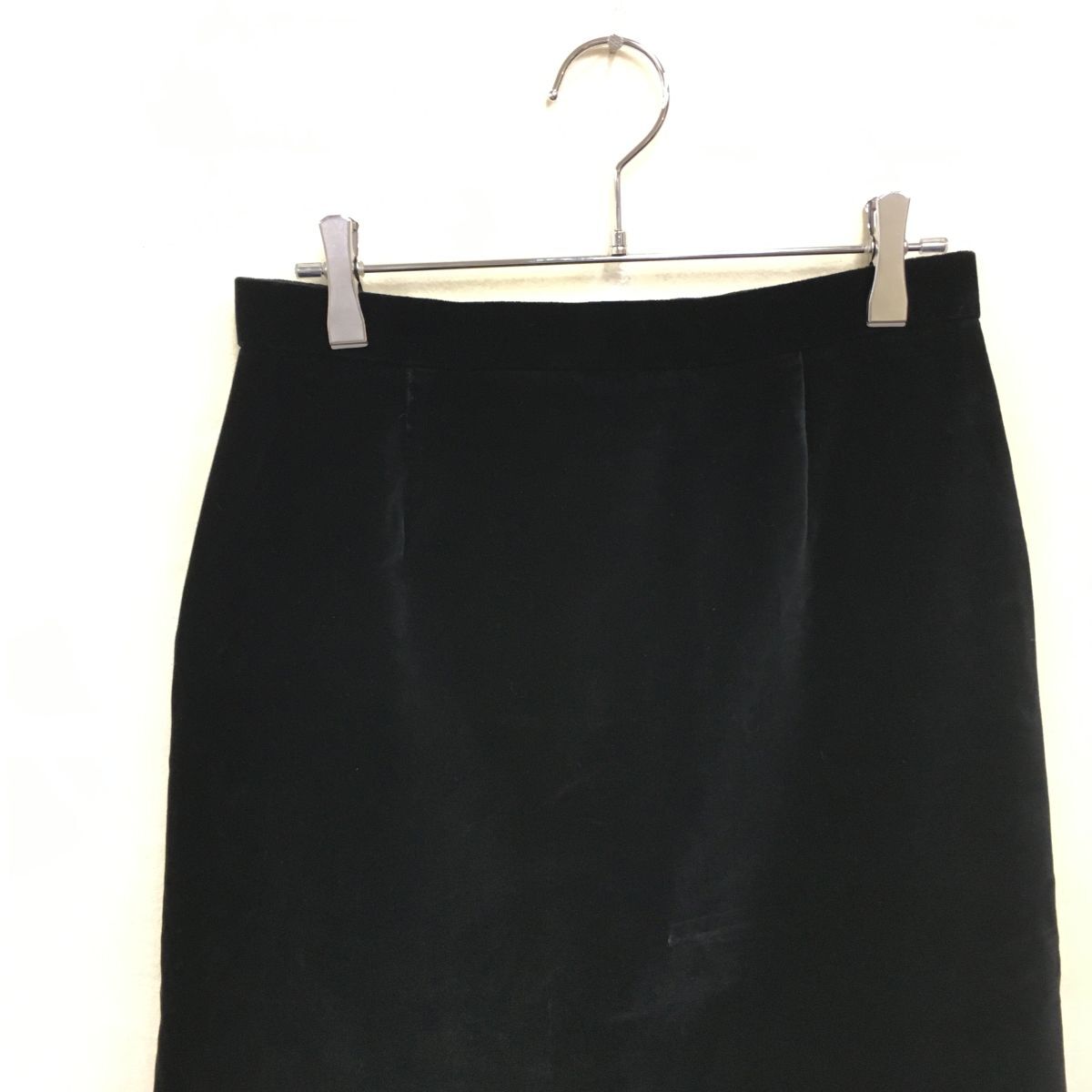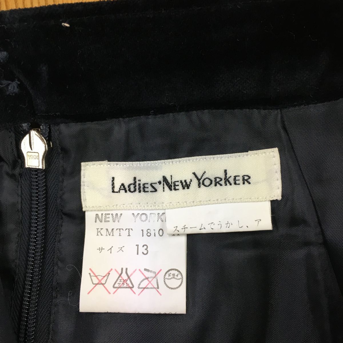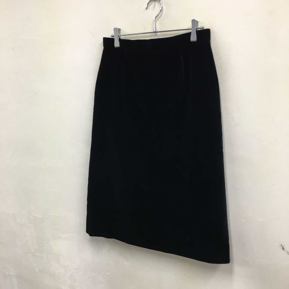 2N2143-G◆ NEWYORKER ニューヨーカー ベロアスカート 膝下丈 ミドル ストレート ファスナー 無地 シンプル ◆ size13 黒 綿 ポリエステル