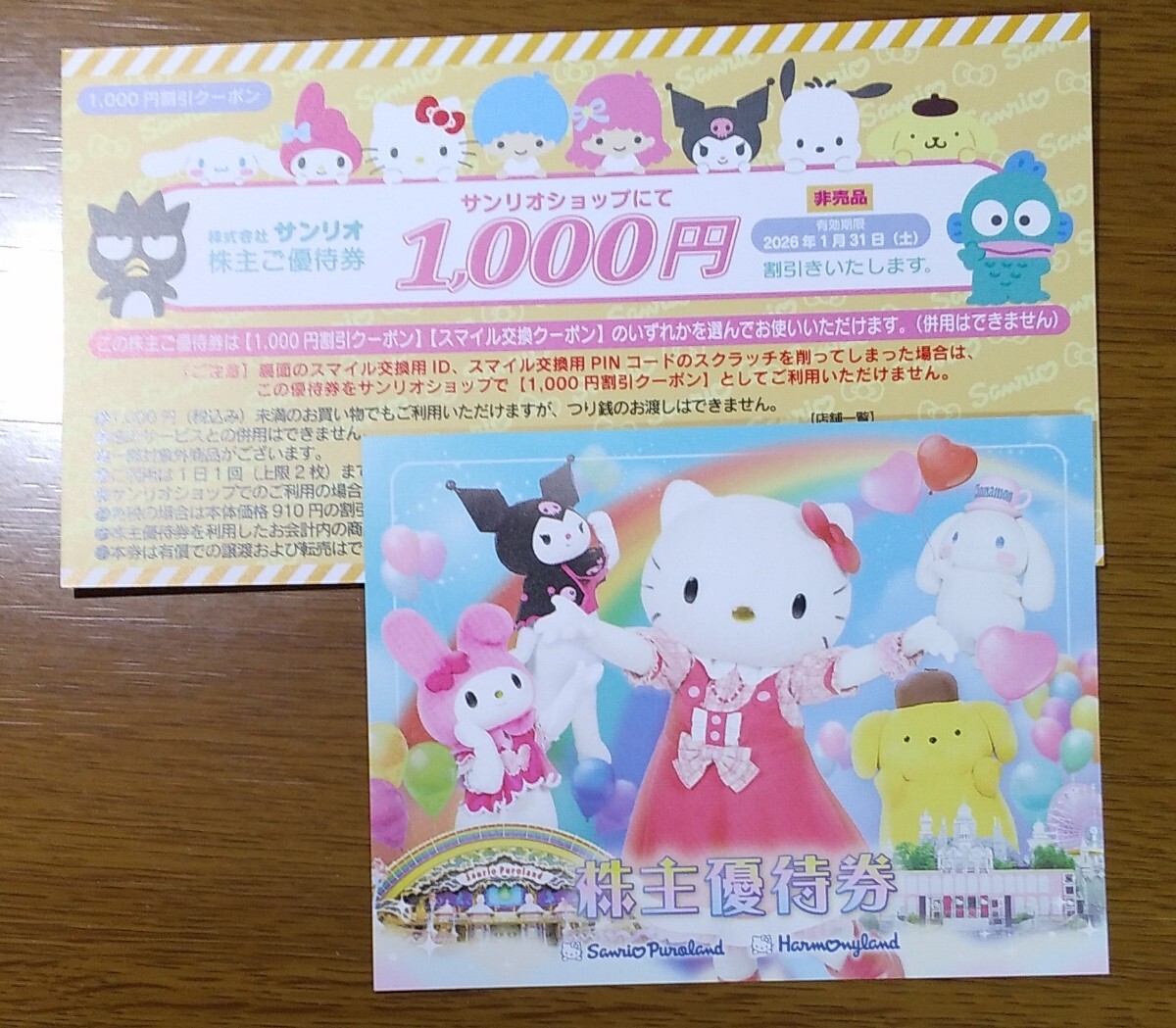 サンリオ 株主優待券…1枚と優待券1000円分…1枚 のセット です。
